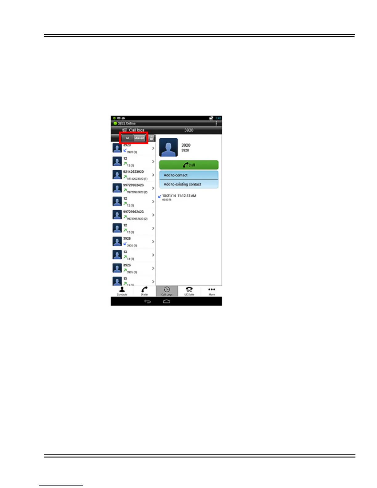 Figure 3-10 Call Logs In the UT880 NMLT Dialer App