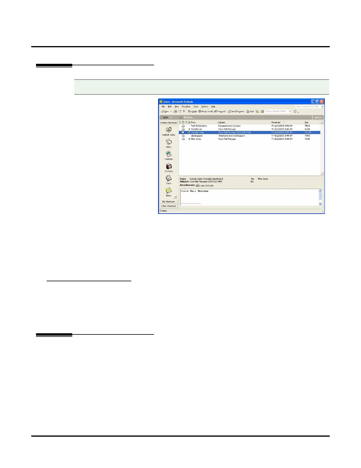 ■ The inbox “Subject” column displays “Voice Mail Message” and the caller’s number (if provided by