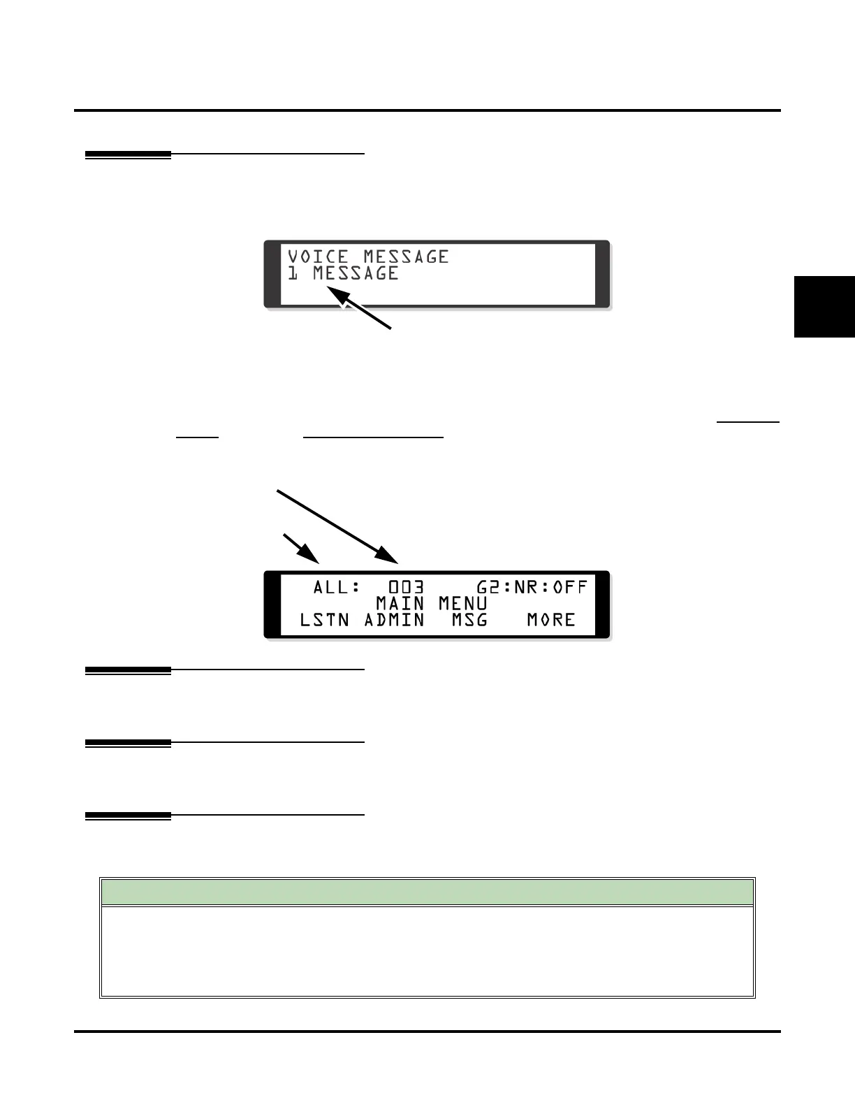 and the number of messages in the active list. For display keysets, this information is on the top line. For