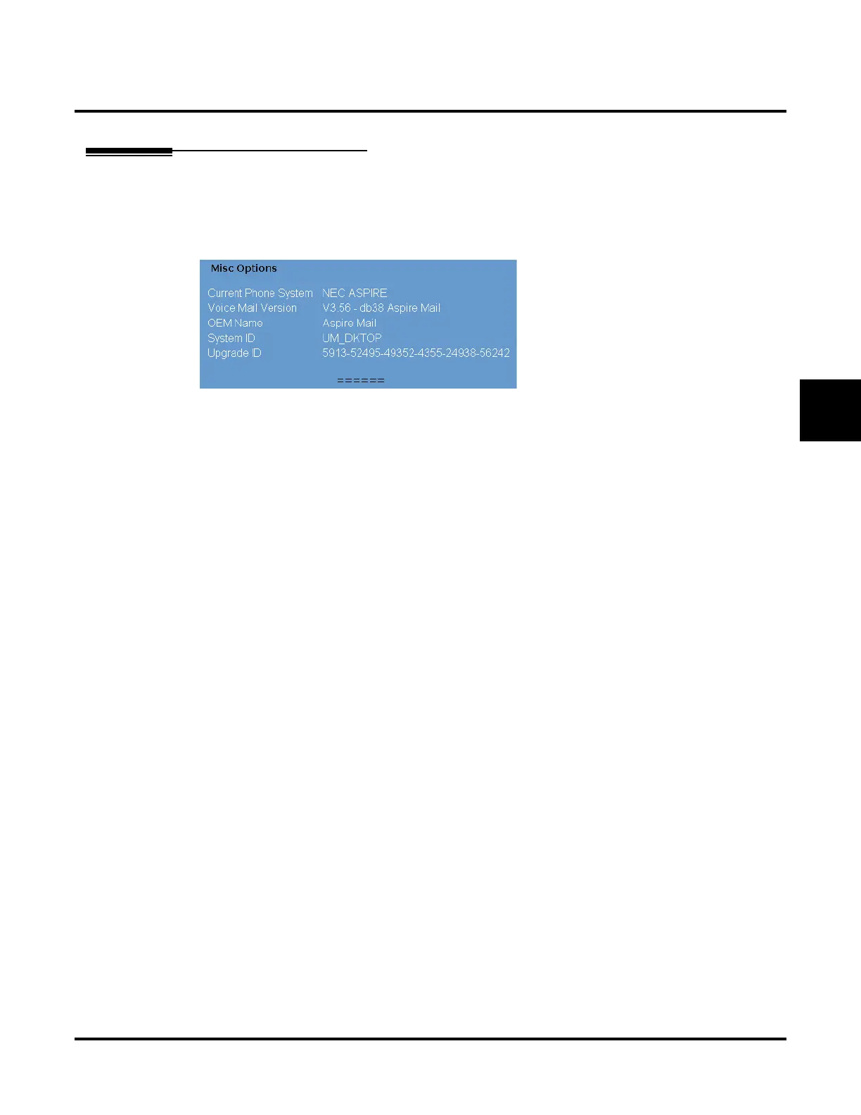 Misc Options shows the voice mail version number.