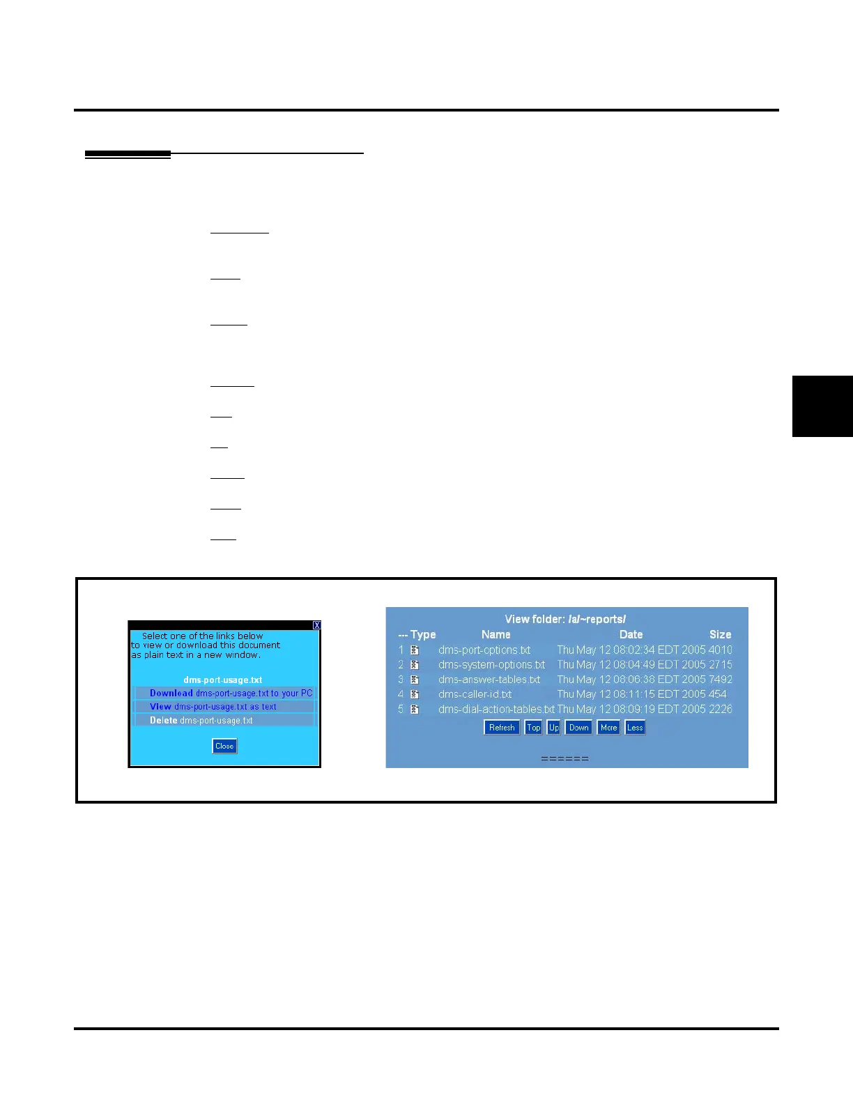 - Click to moves down the report list from the current display position.