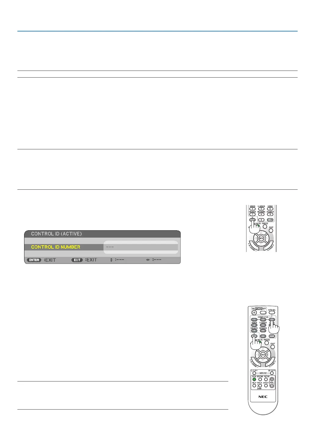 the CONTROL ID function. (In this case the buttons on the projector cabinet can be used.)