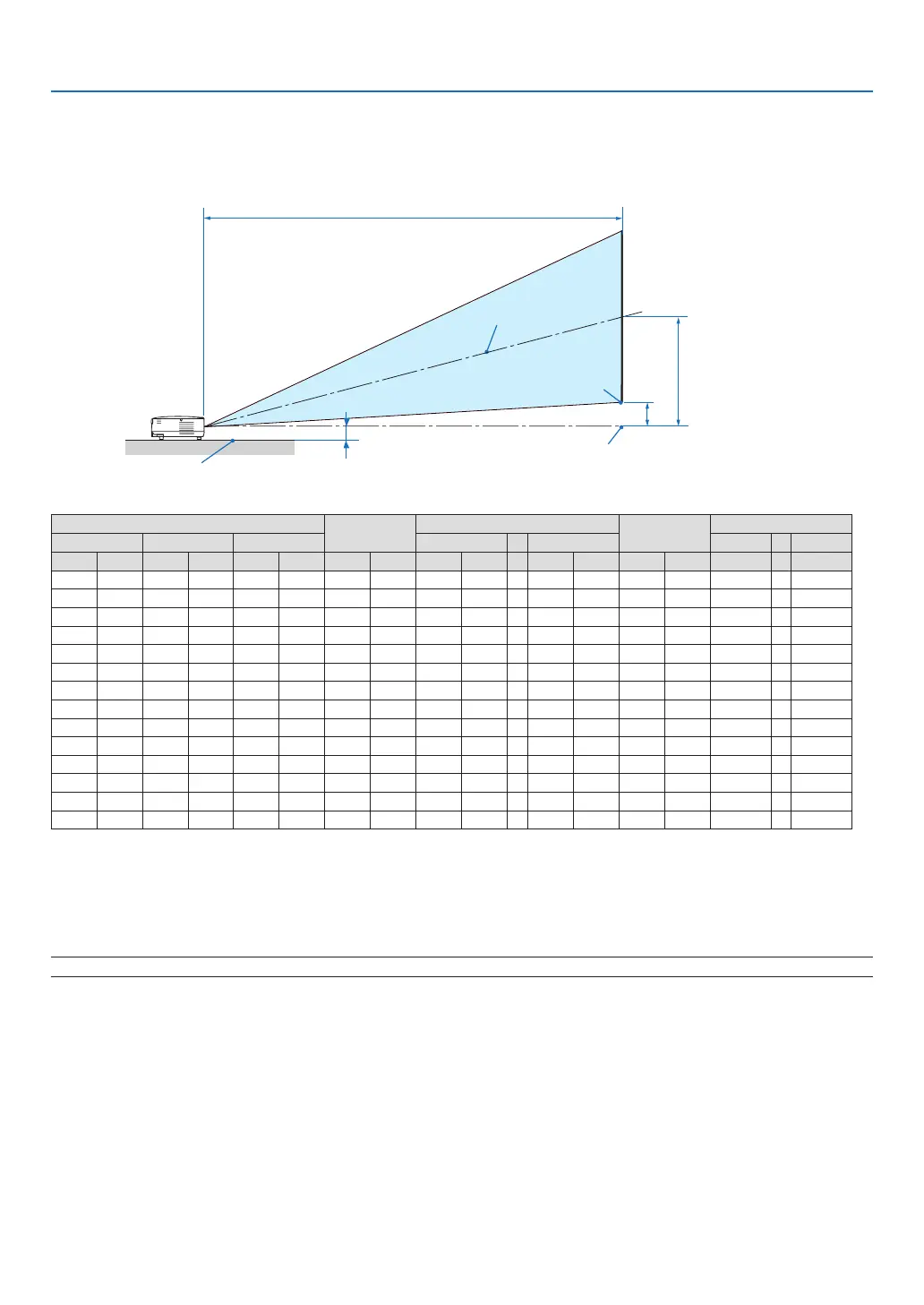 The following shows the proper relative positions of the projector and screen. Refer to the table to determine the