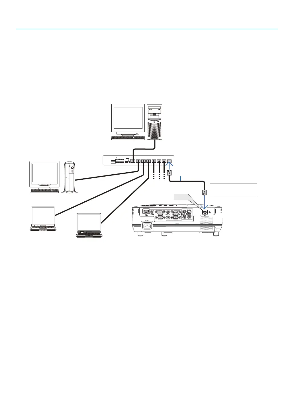 TheprojectorcomesstandardwithaLANport(RJ-45)whichprovidesaLANconnectionusingaLANcable.
