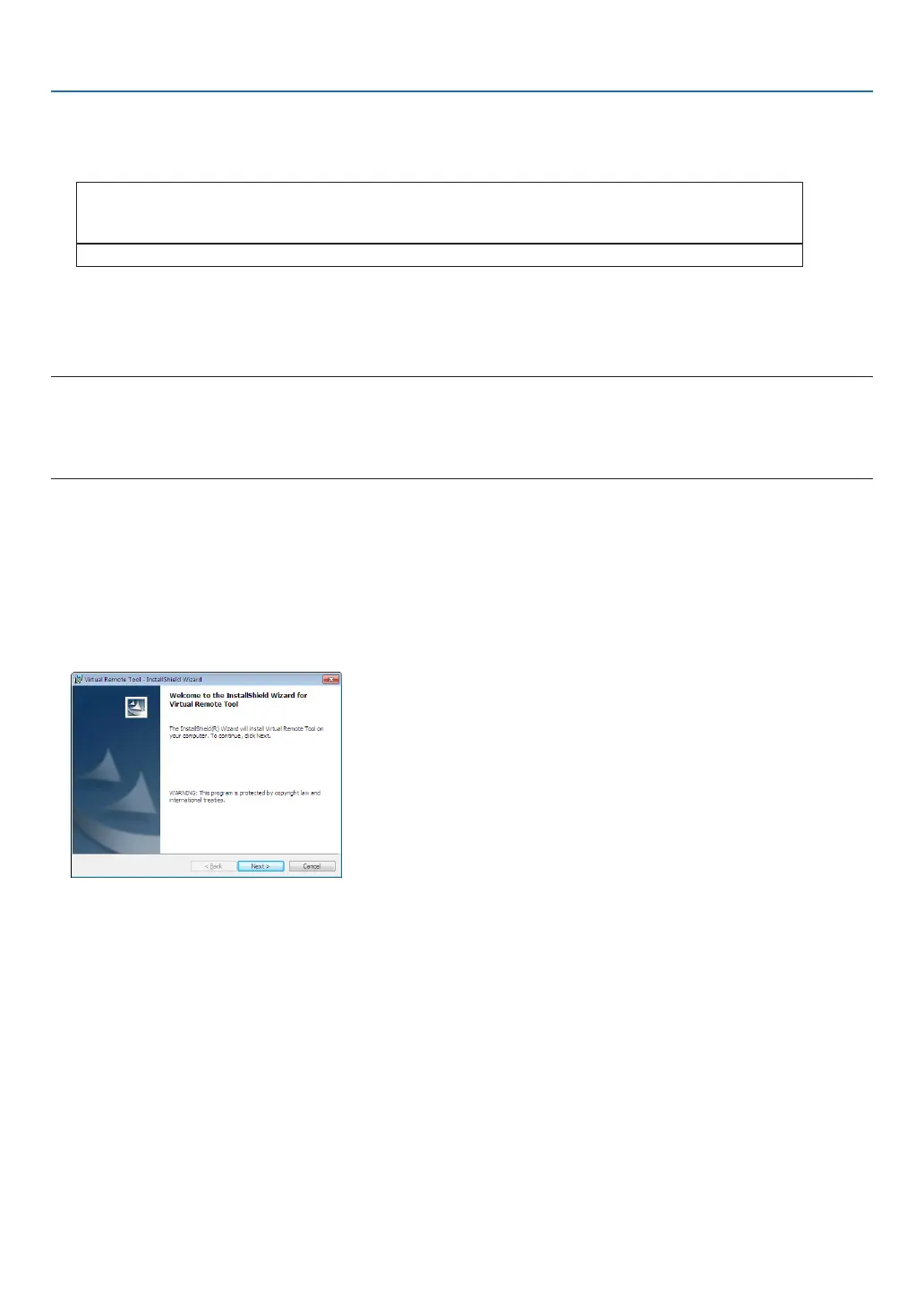 • ExitallrunningprogramsbeforeinstallingVirtualRemoteTool.Ifanotherprogramisrunning,theinstallationmaynotbecom-