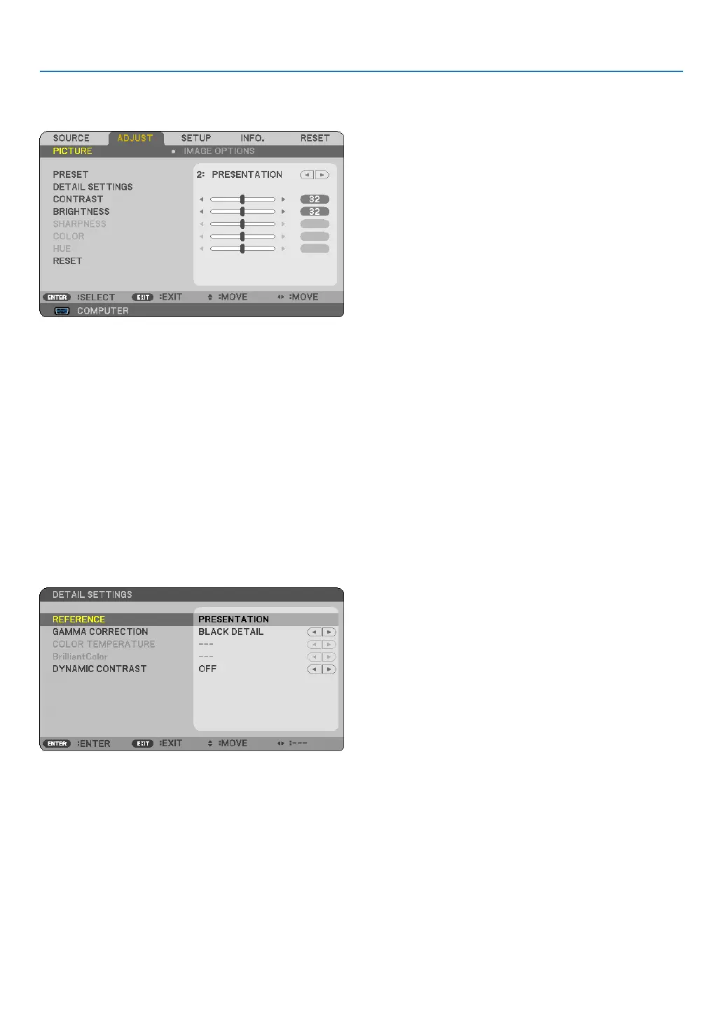 First,selectabasepresetmodefrom[REFERENCE],thenset[GAMMACORRECTION],[COLORTEMPERATURE],
