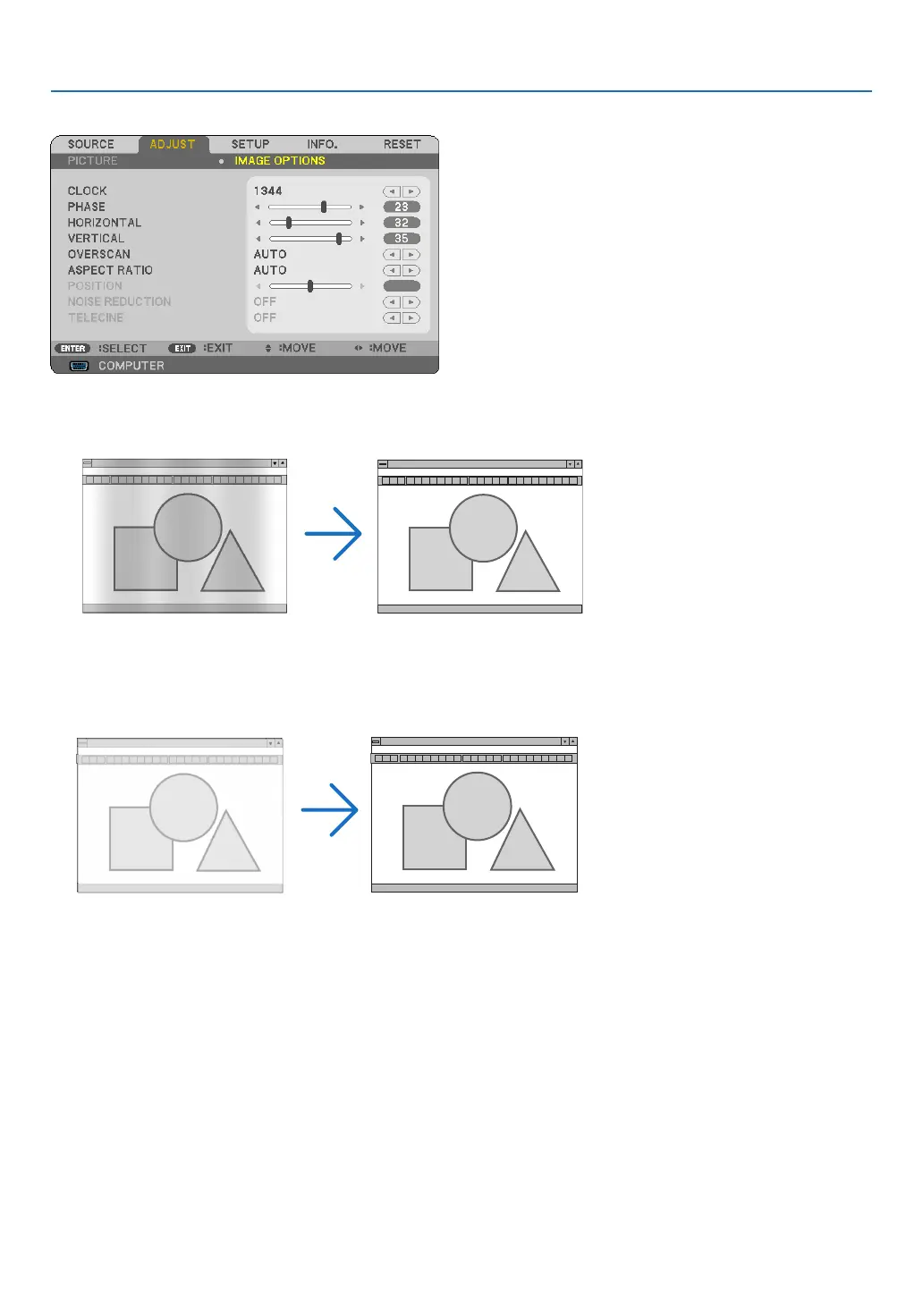 PHASE ................... Use this item to adjust the clock phase or to reduce video noise, dot interference or cross talk. (This is