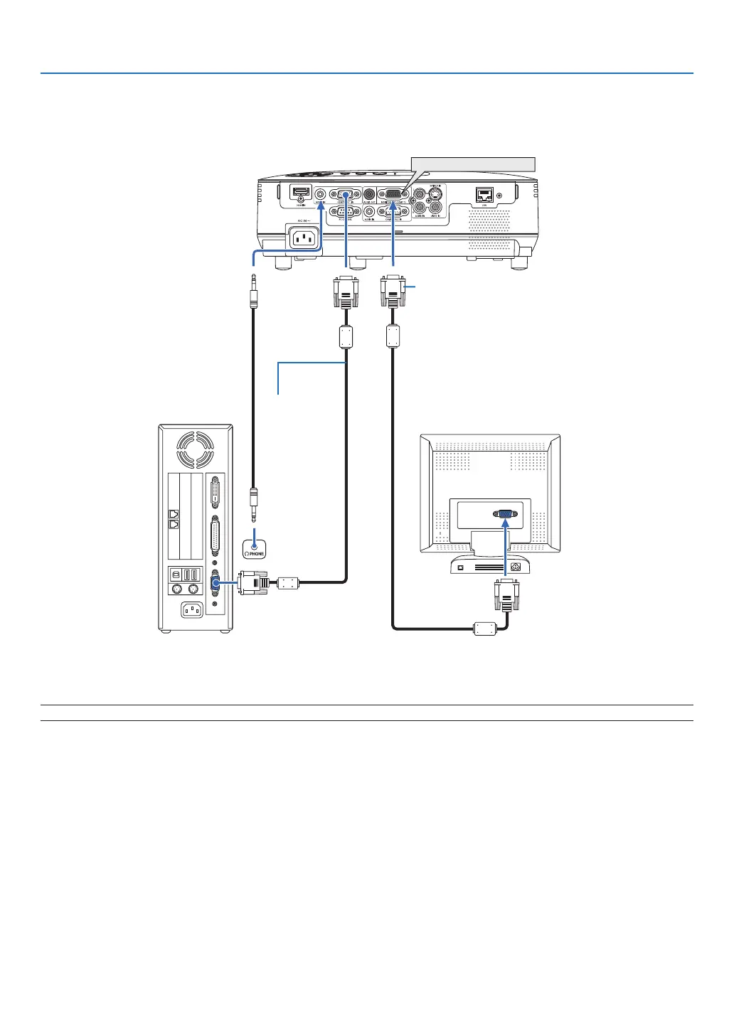 You can connect a separate, external monitor to your projector to simultaneously view on a monitor the computer