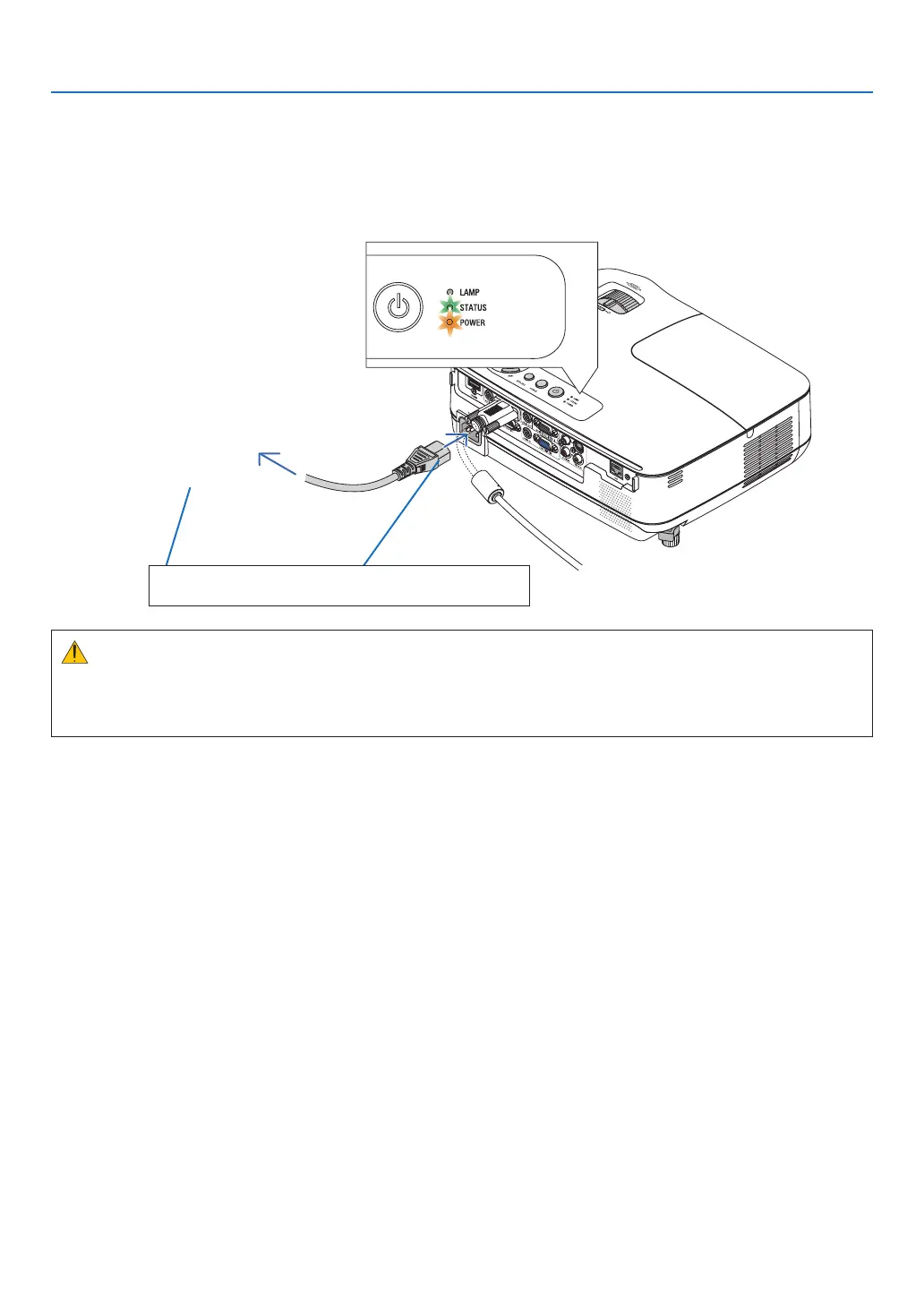 First connect the supplied power cord’s three-pin plug to the AC IN of the projector, and then connect the other plug