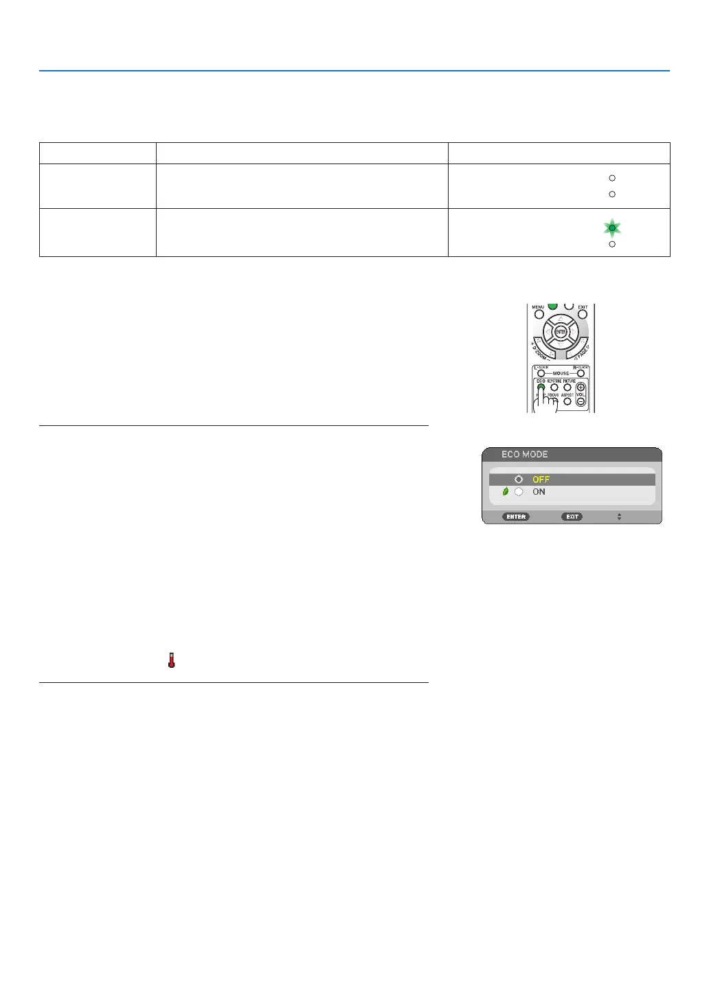 • If the projector is overheated in [OFF] mode, there may be a case where the [ECO