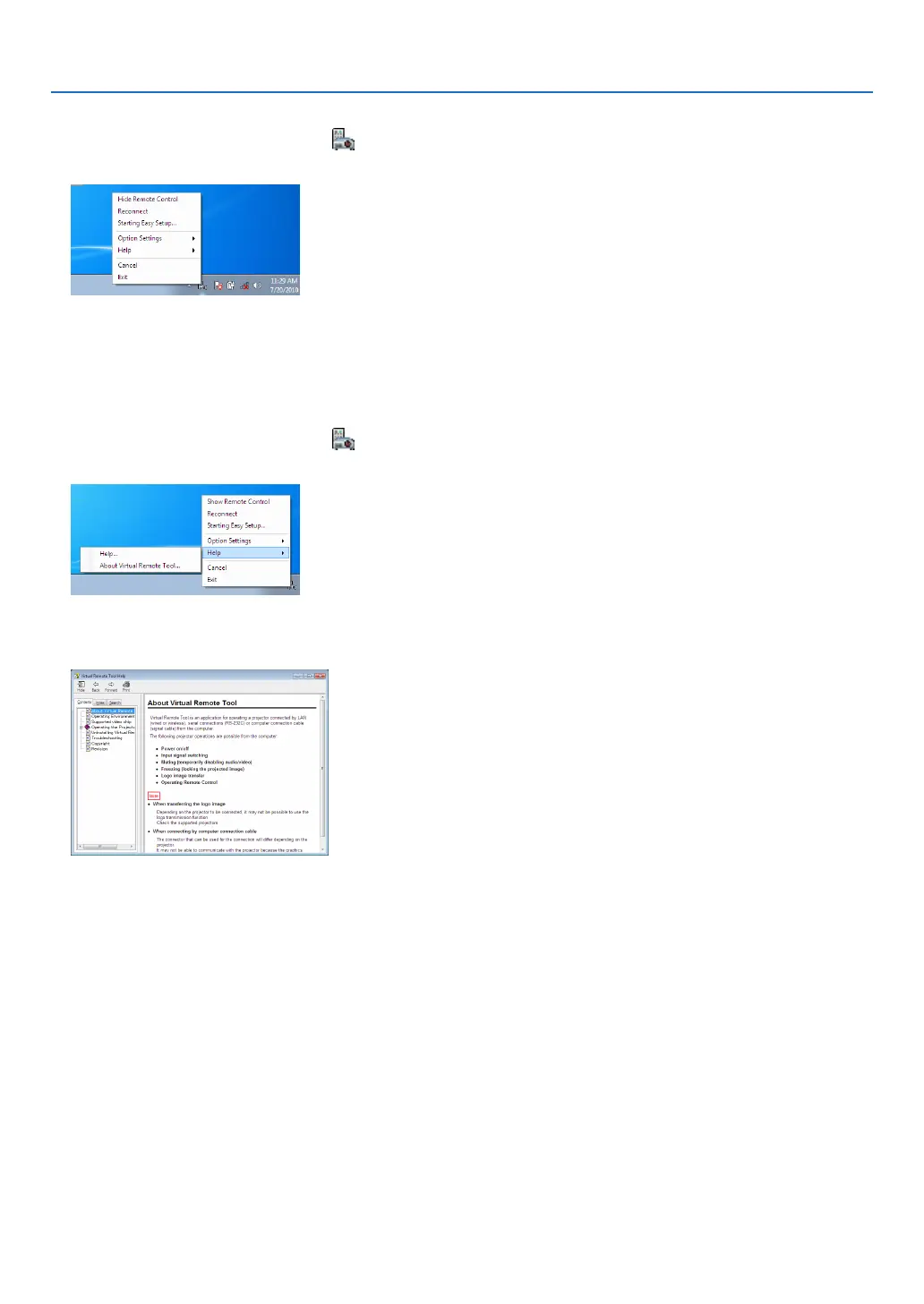 1 Click the Virtual Remote Tool icon on the taskbar when Virtual Remote Tool is running.