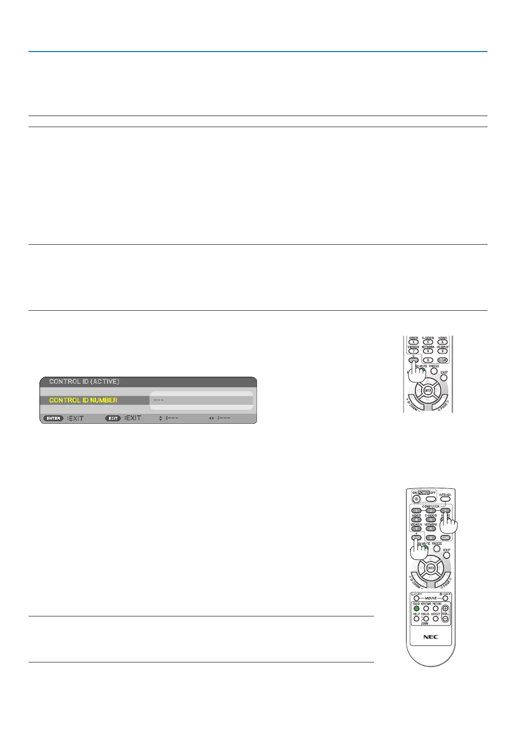 the CONTROL ID function. (In this case the buttons on the projector cabinet can be used.)
