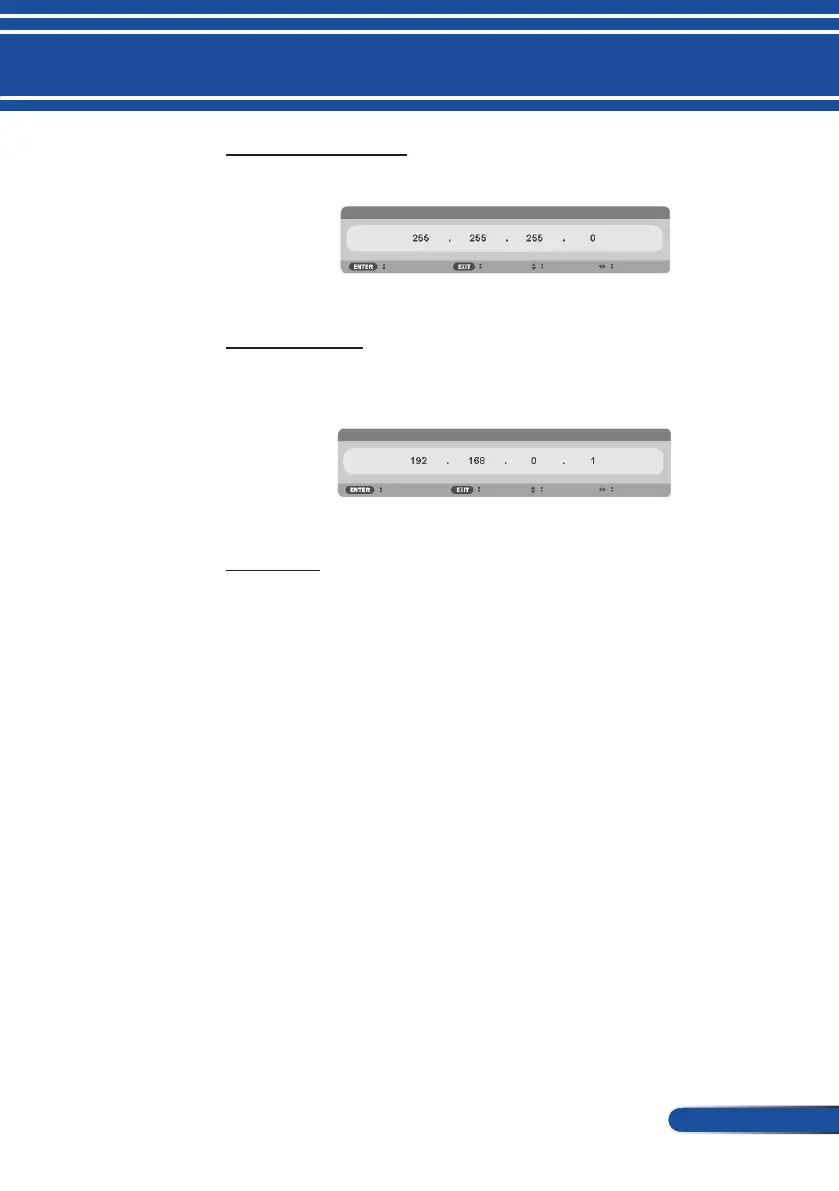 NEC V302X - Setting: Subnet Mask and Gateway