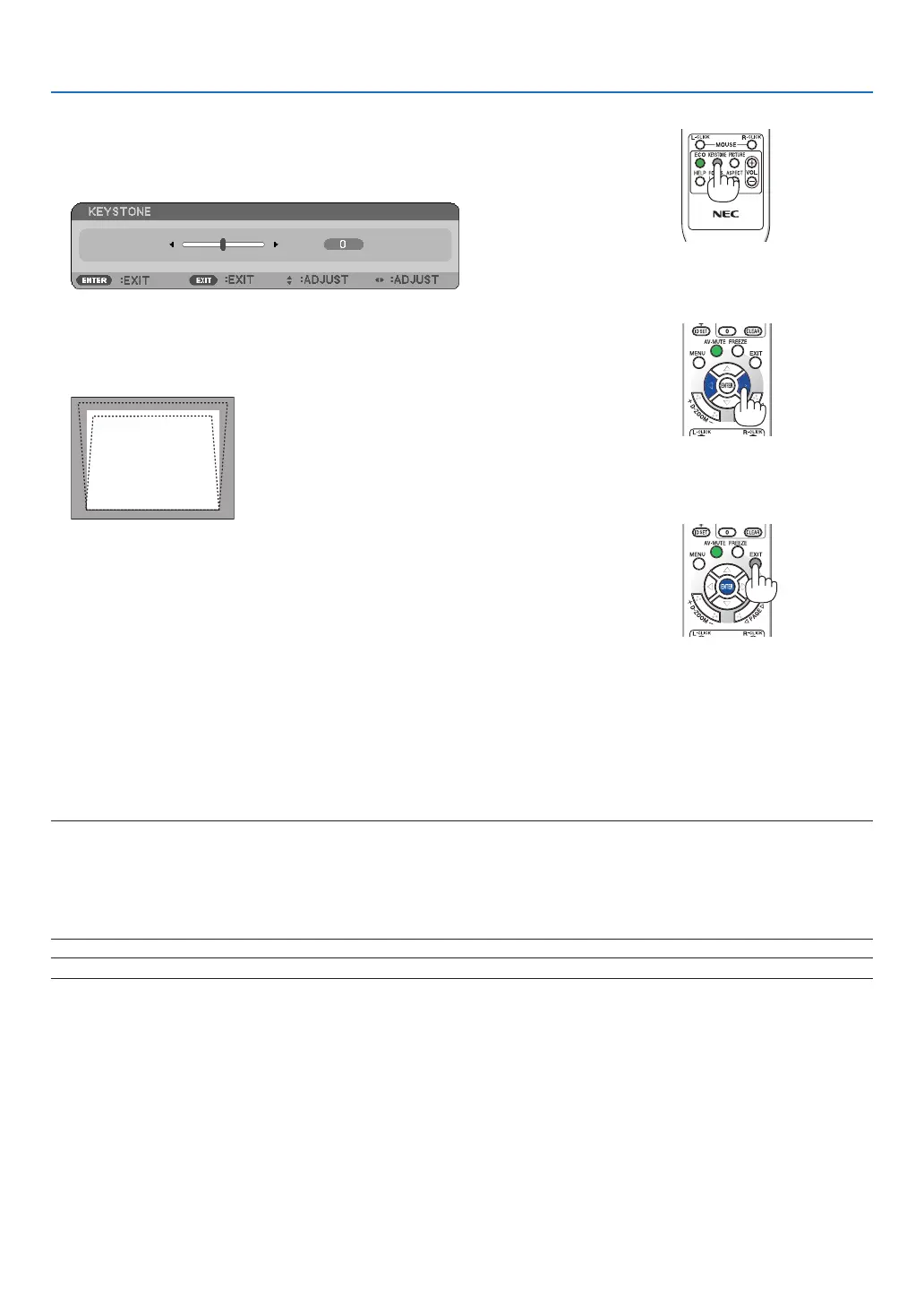 2. Use the ◁ or ▷ button to correct the keystone distortion.
