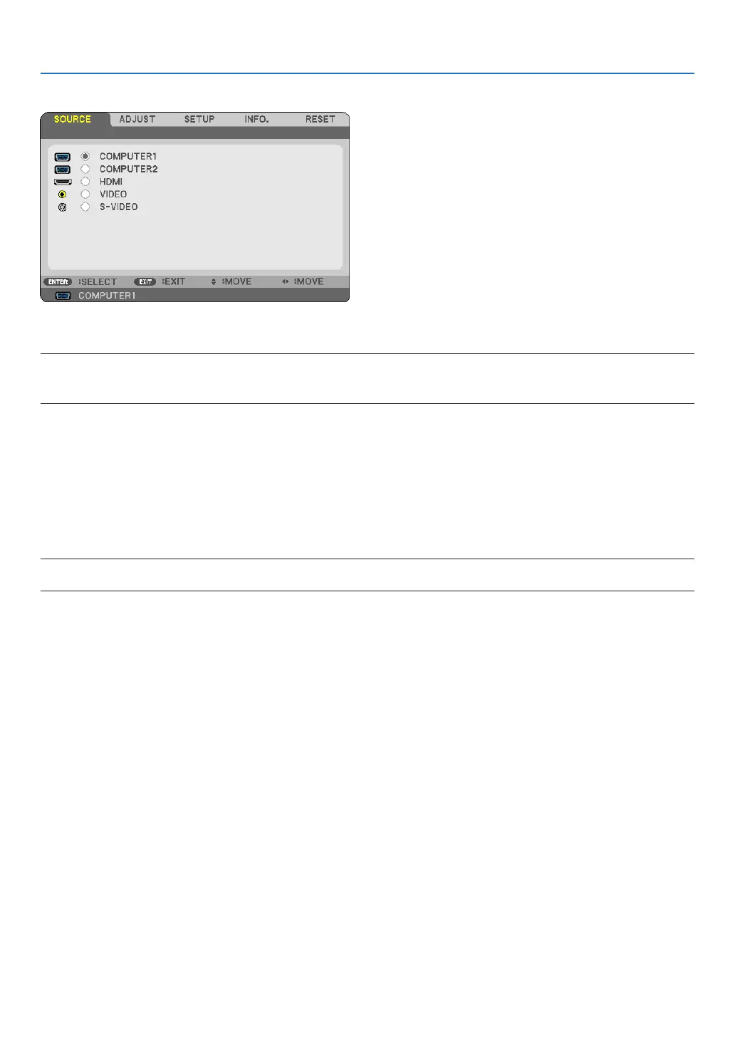 • When the component input signal is connected to the COMPUTER 1 IN connector, select [COMPUTER1].