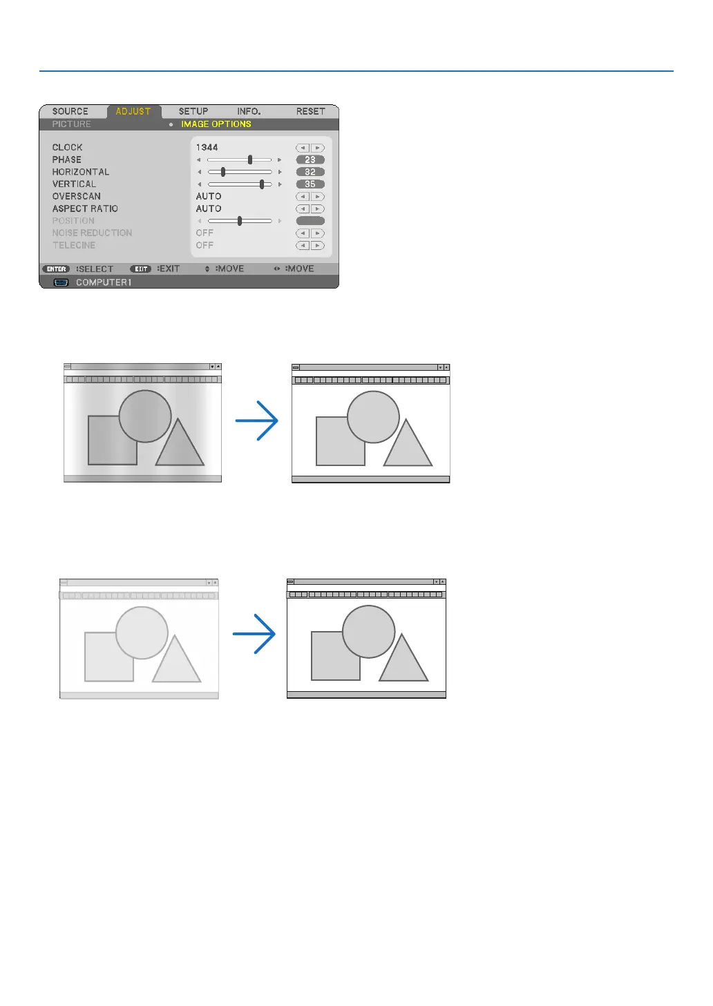 PHASE ................... Use this item to adjust the clock phase or to reduce video noise, dot interference or cross talk. (This is