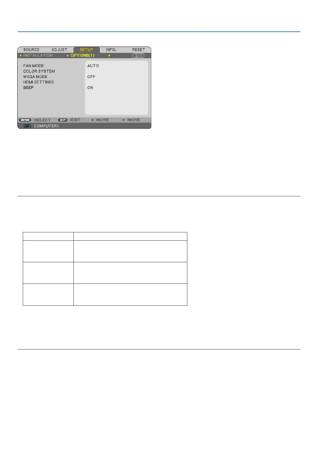 to overcool, causing the image to flicker. Switch [FAN MODE] to [AUTO].