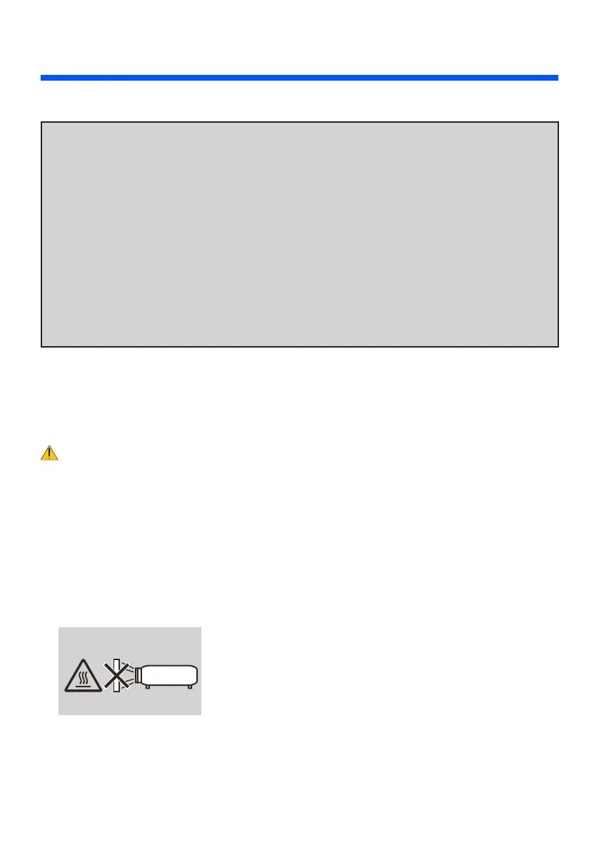 the lens while the projector is on. Doing so can cause the object to