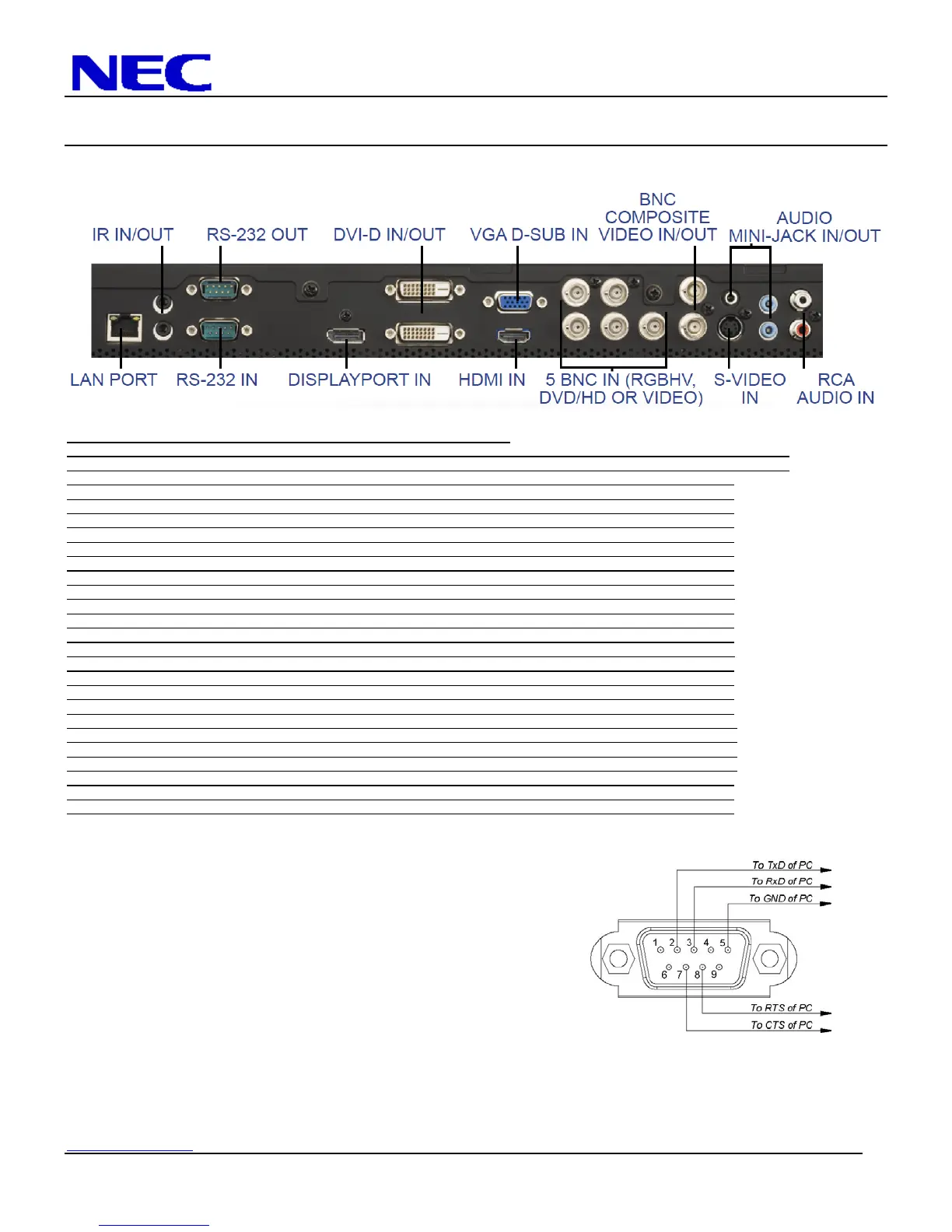 Data Length: 8 bits PC Control Connector (D-Sub 9Pin)