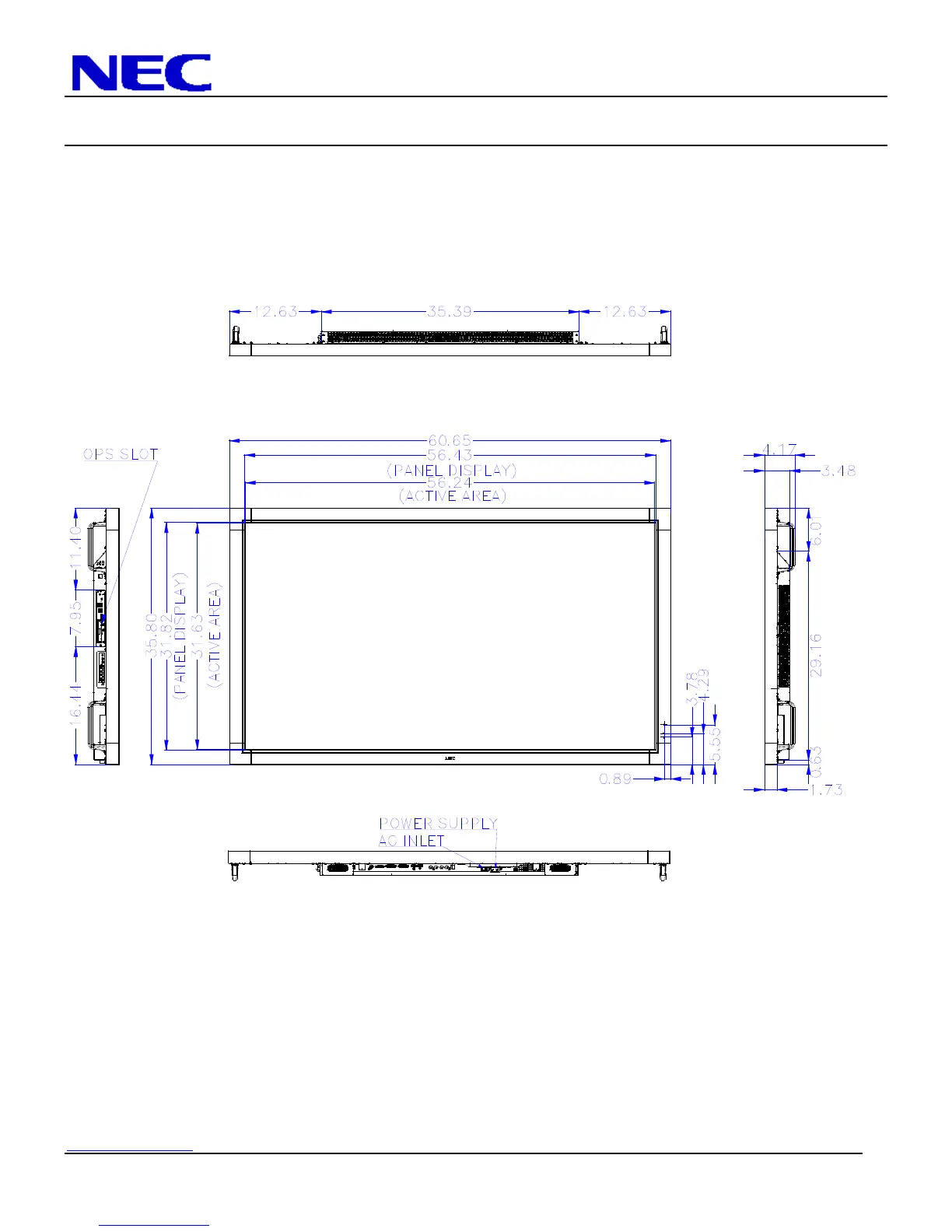 NEC V652 - Display Dimensions; Front, Top, Right Side, Left Side