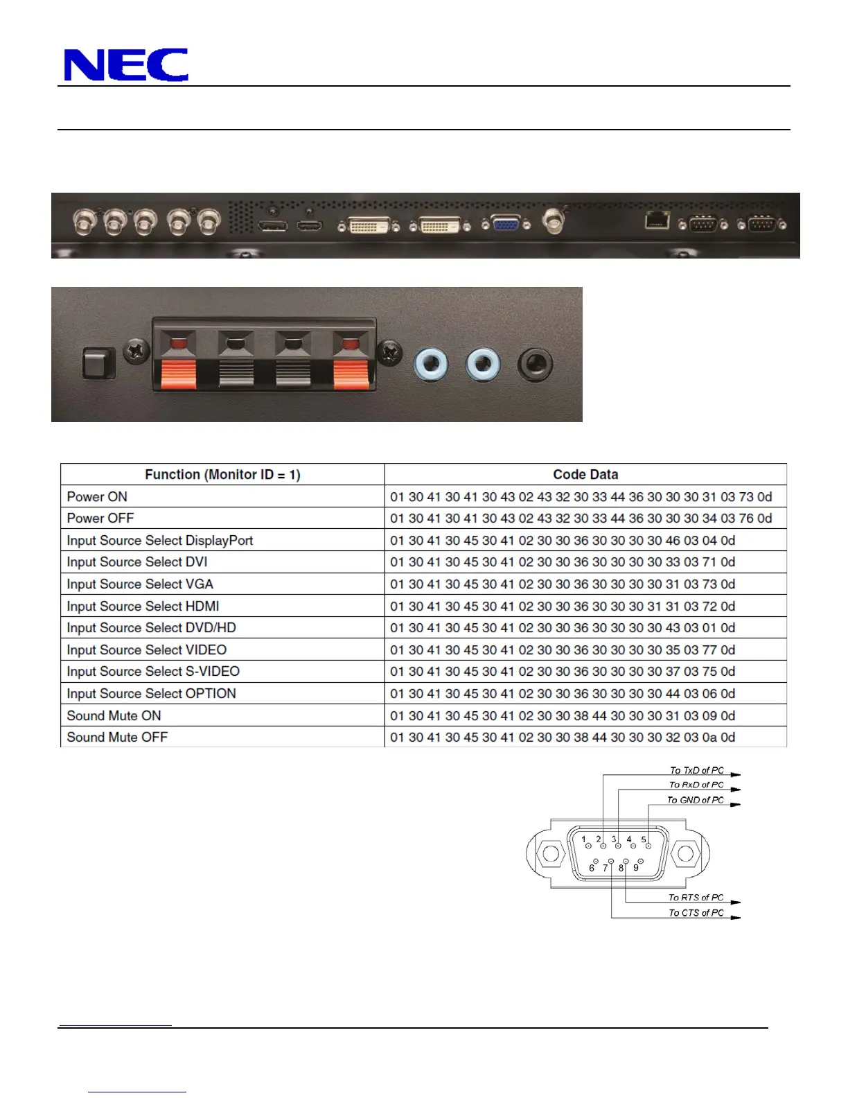 NOTE: Contact your NEC rep for codes not listed.