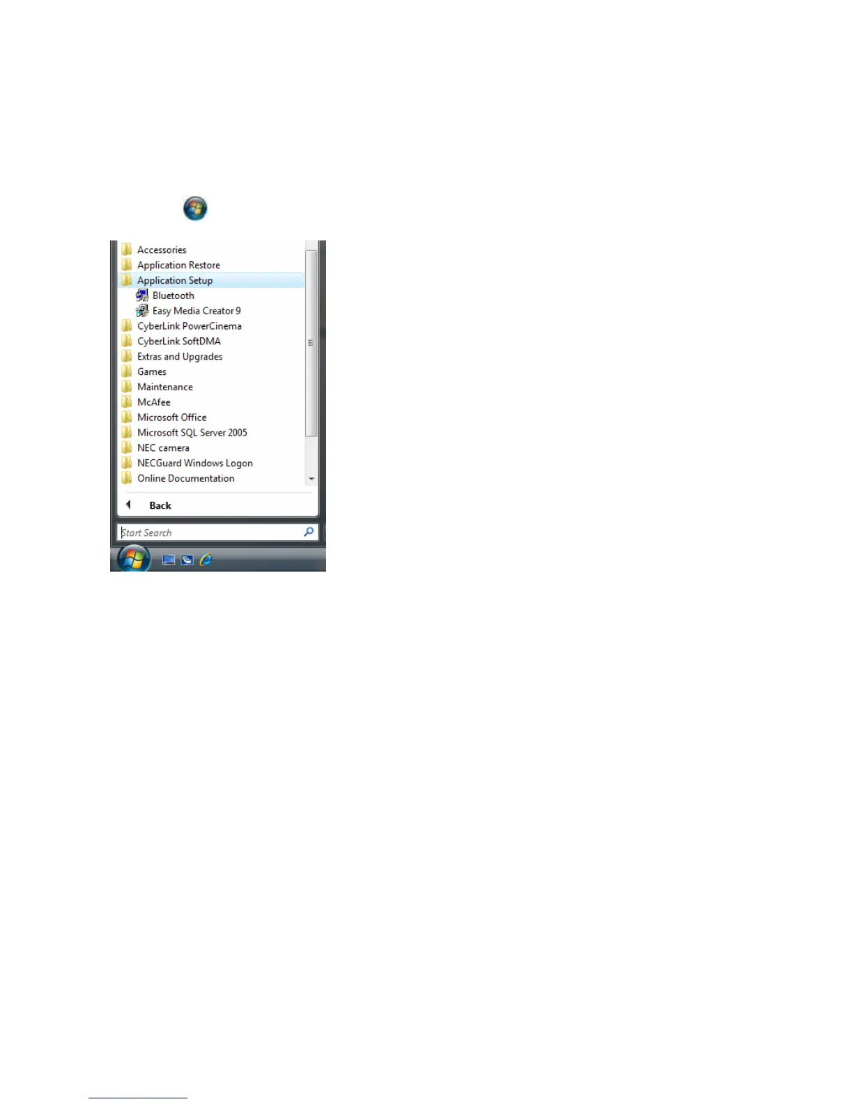 , go to All Programs, select Application Setup and then click Bluetooth.