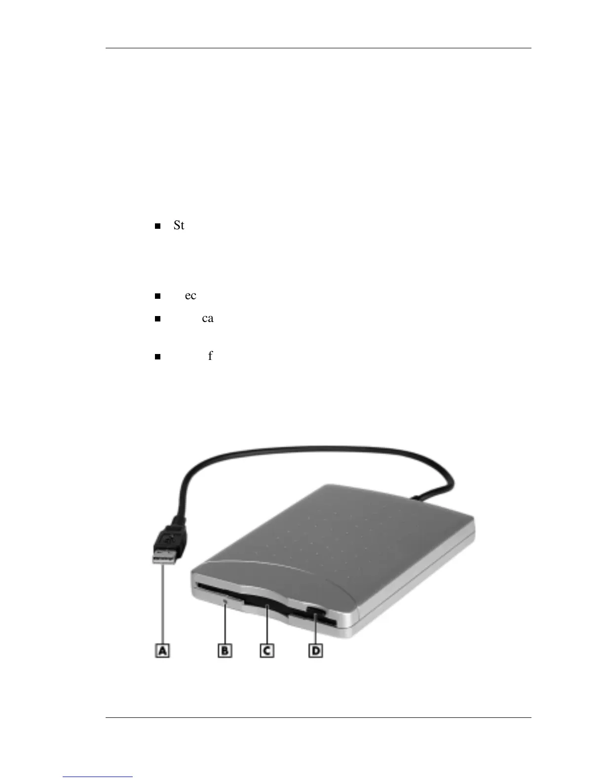A – USB Cable C – USB Diskette Drive