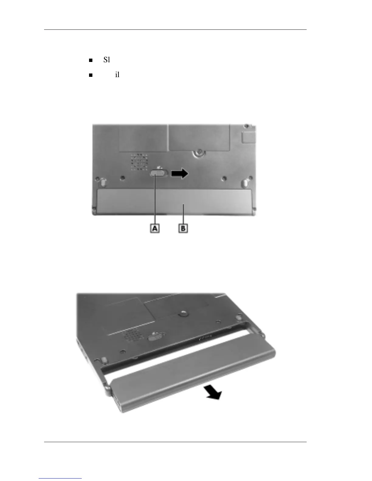 A – Battery Release Button B – Battery Pack