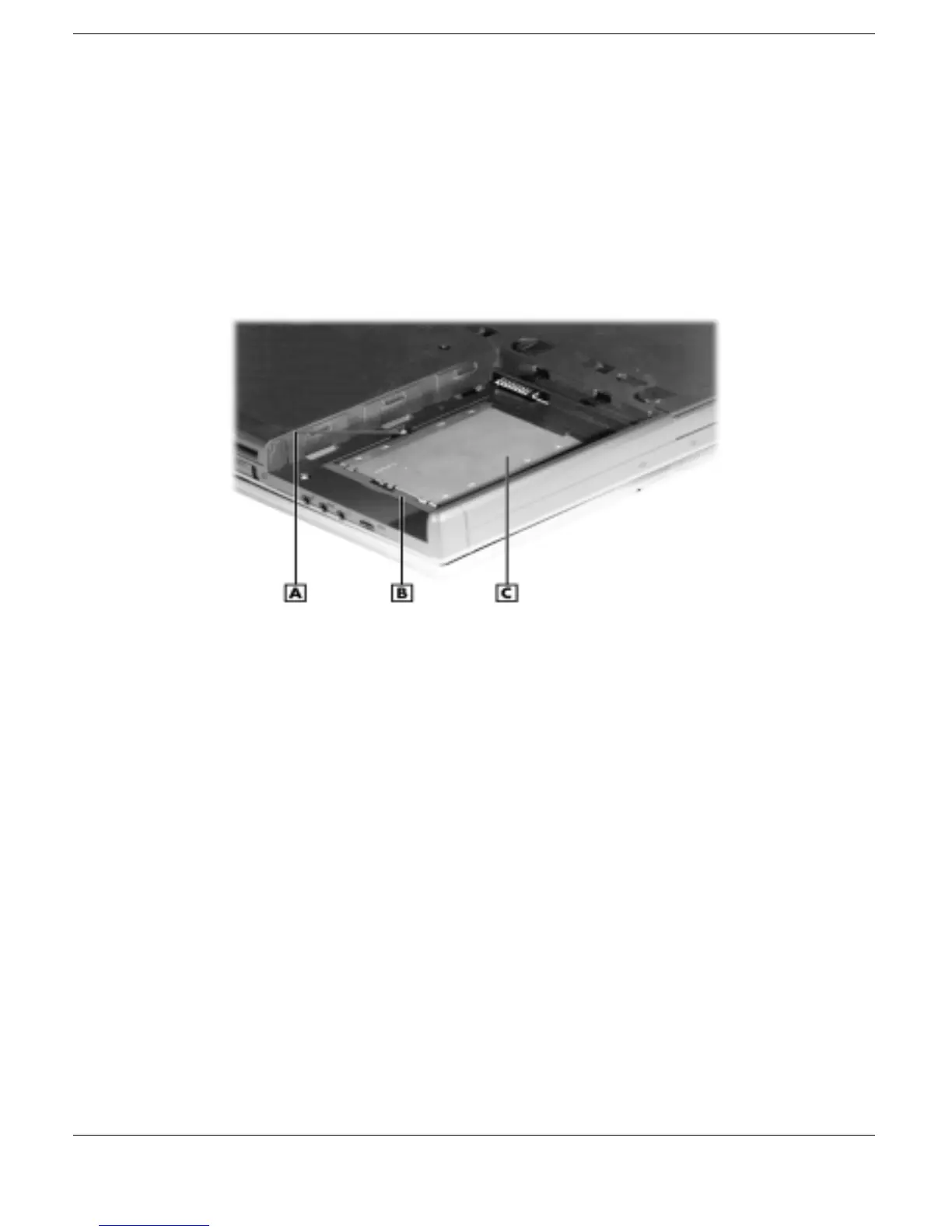A – Screw B – Hard Disk Drive Lever C – Hard Disk Drive