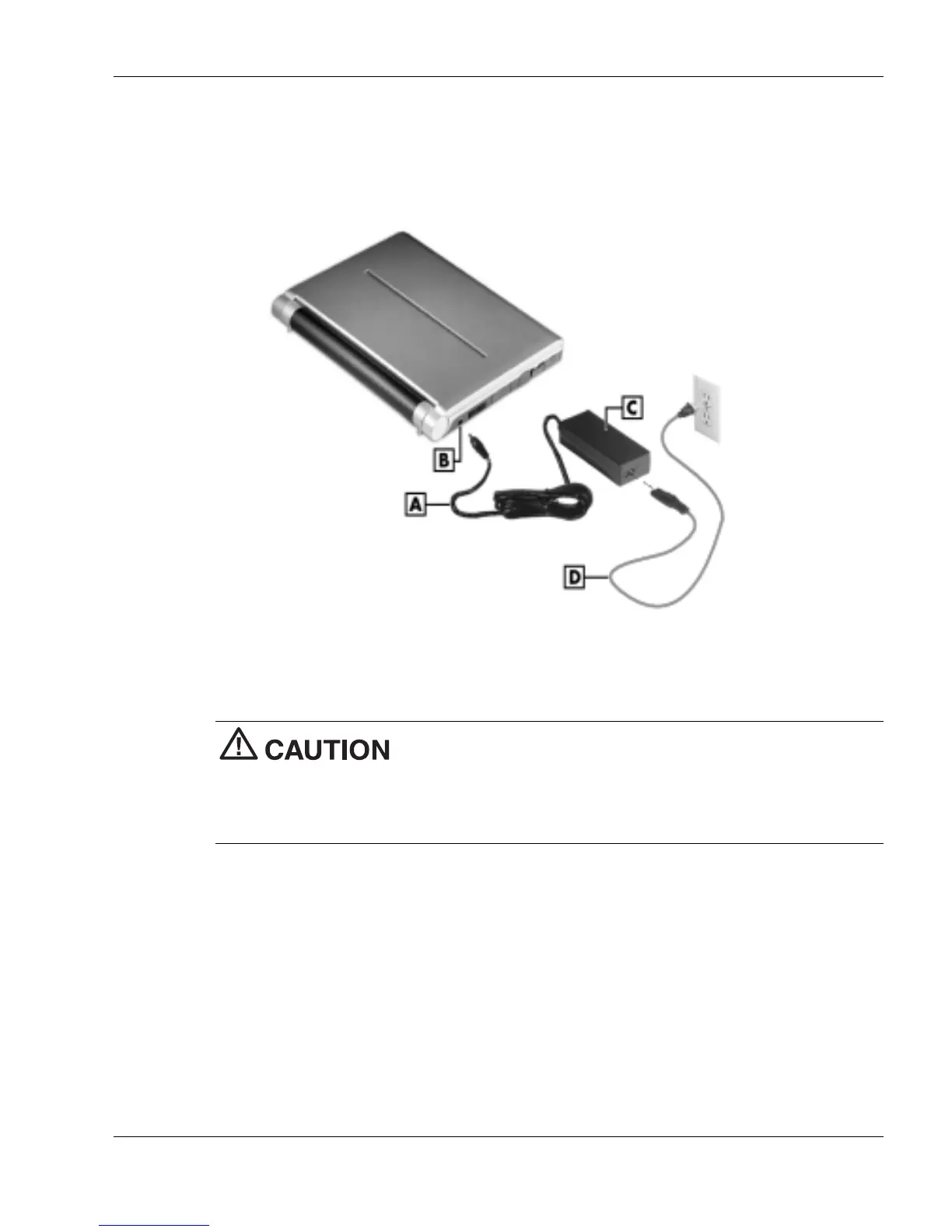 B – AC Power Port D – Power Cable
