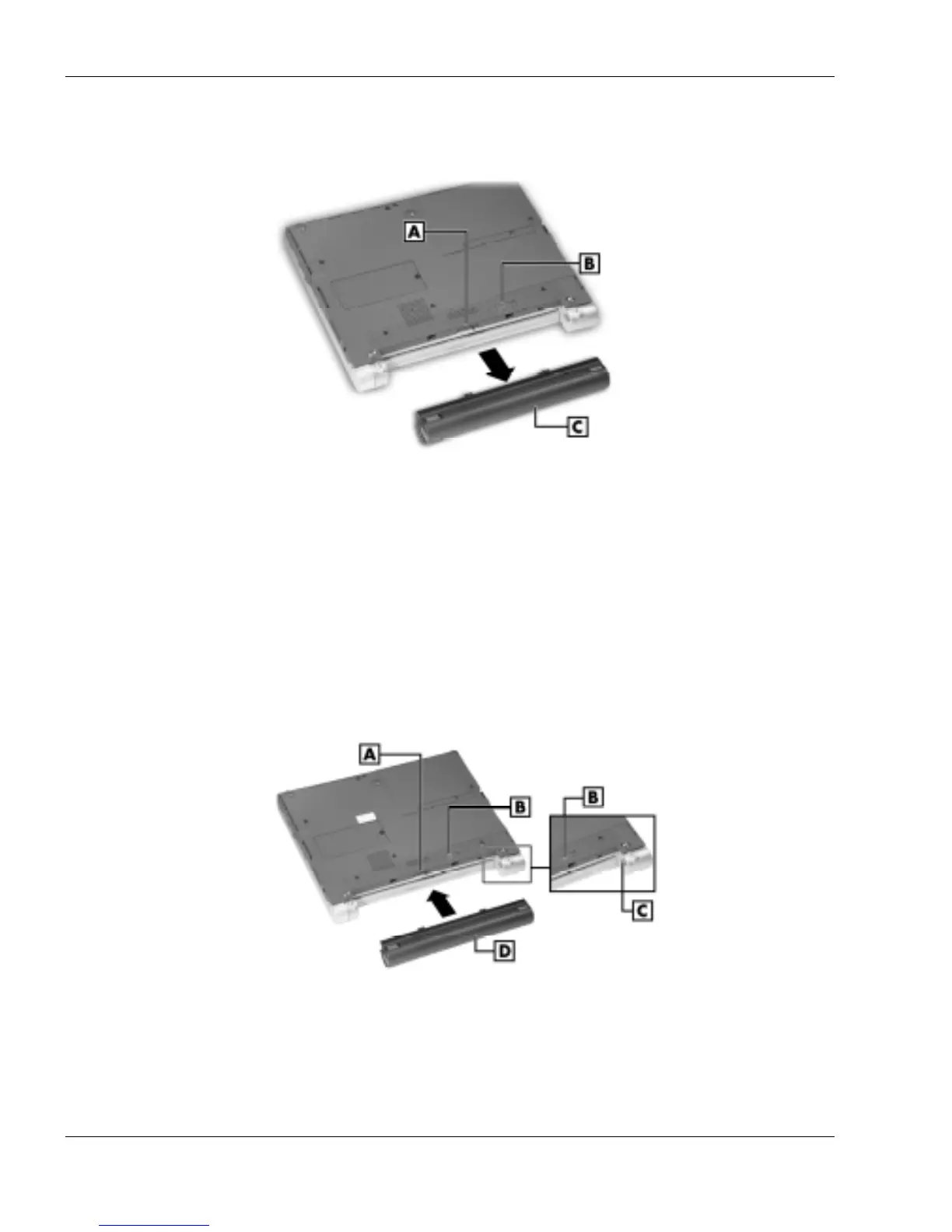 A – Battery Bay Connectors C – Alignment Grooves
