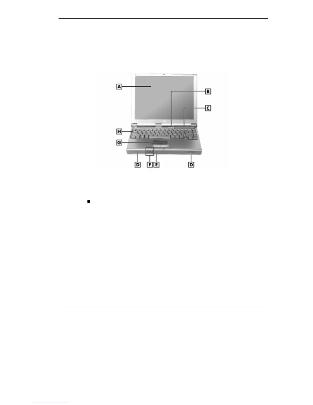 E - Microphone F - Power Status LEDs G - VersaGlide H - Keyboard
