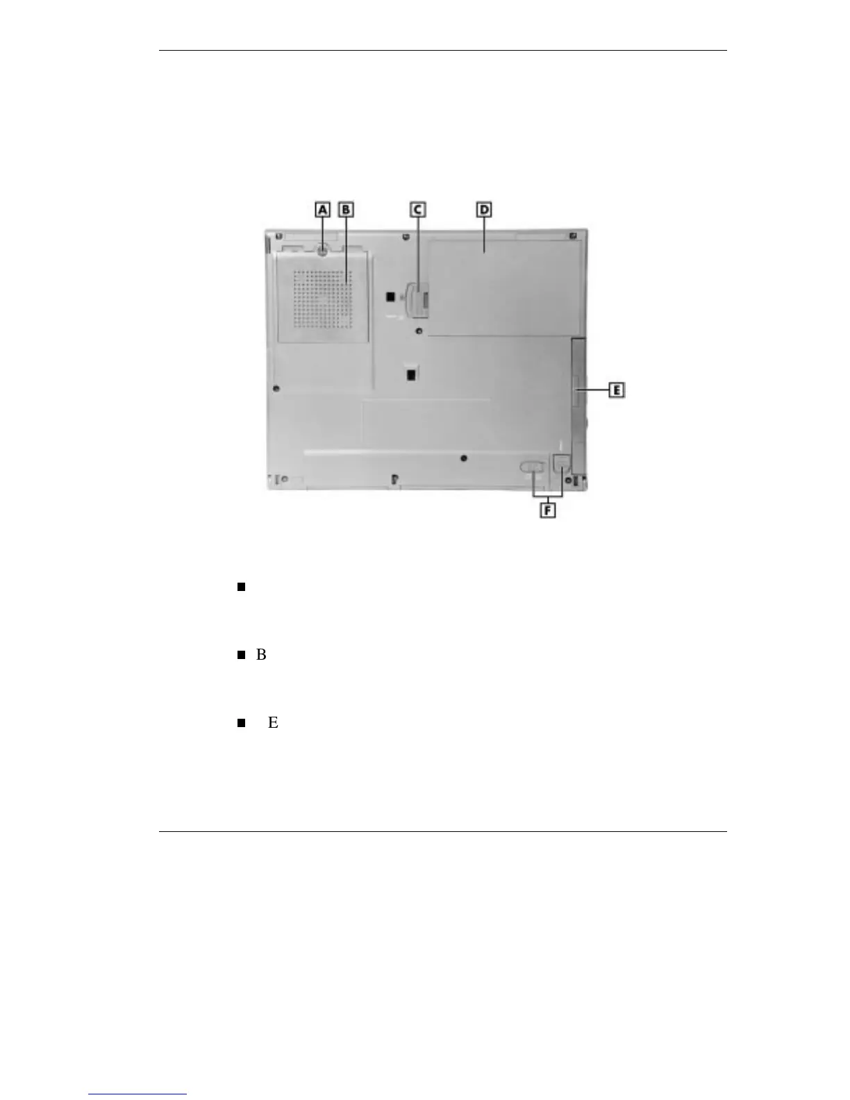 A - Coin Screw B - Memory Expansion Bay Cover C - Battery Bay Release