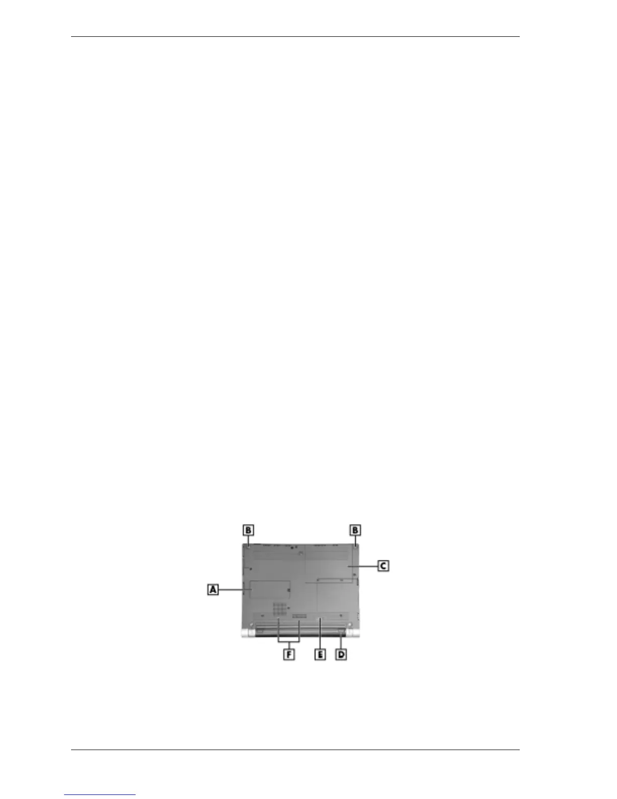 B – Notebook Feet (2 of 5) E – Battery Release Latch