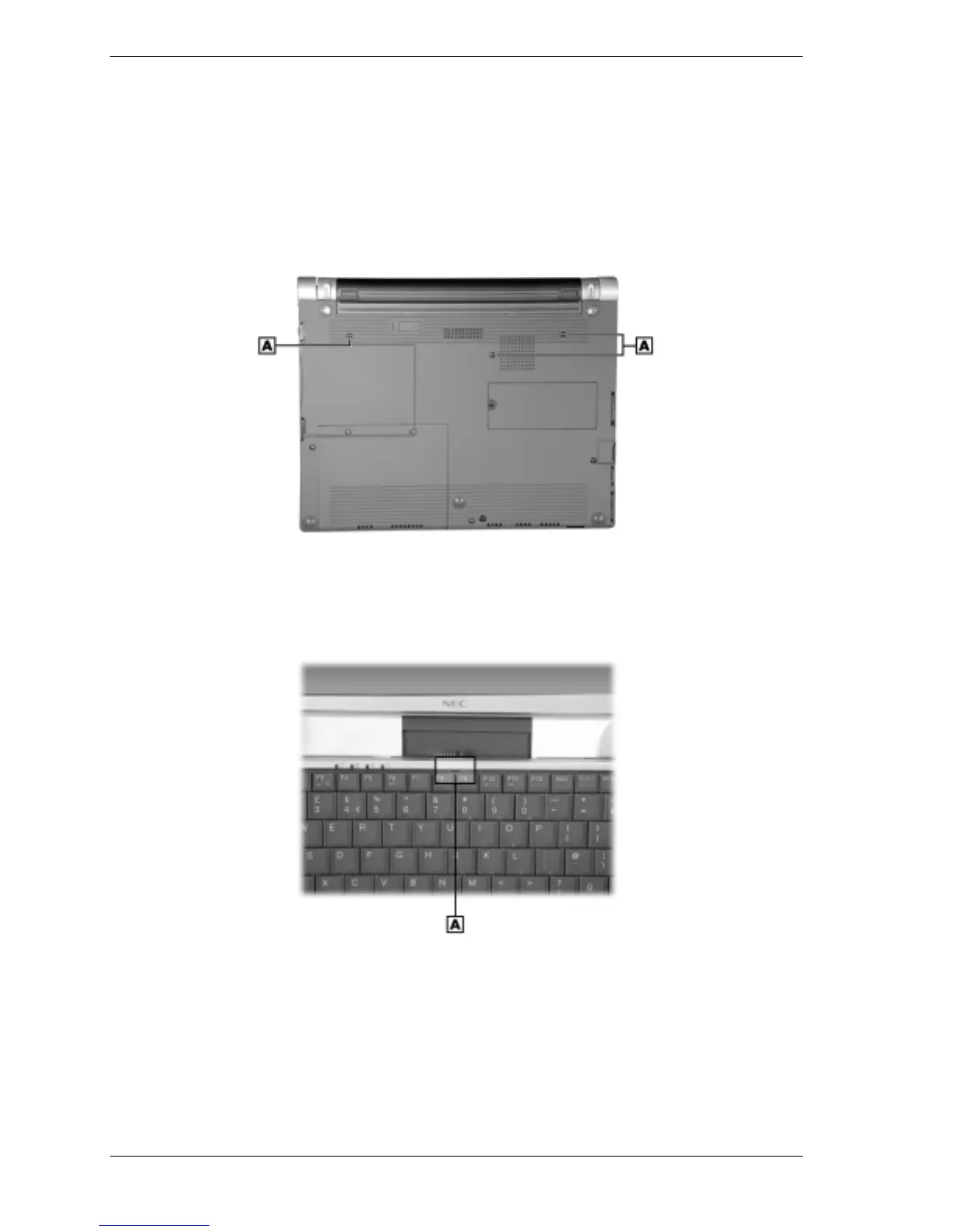 Turn the notebook over, open the LCD panel, and locate the slot on the keyboard above and