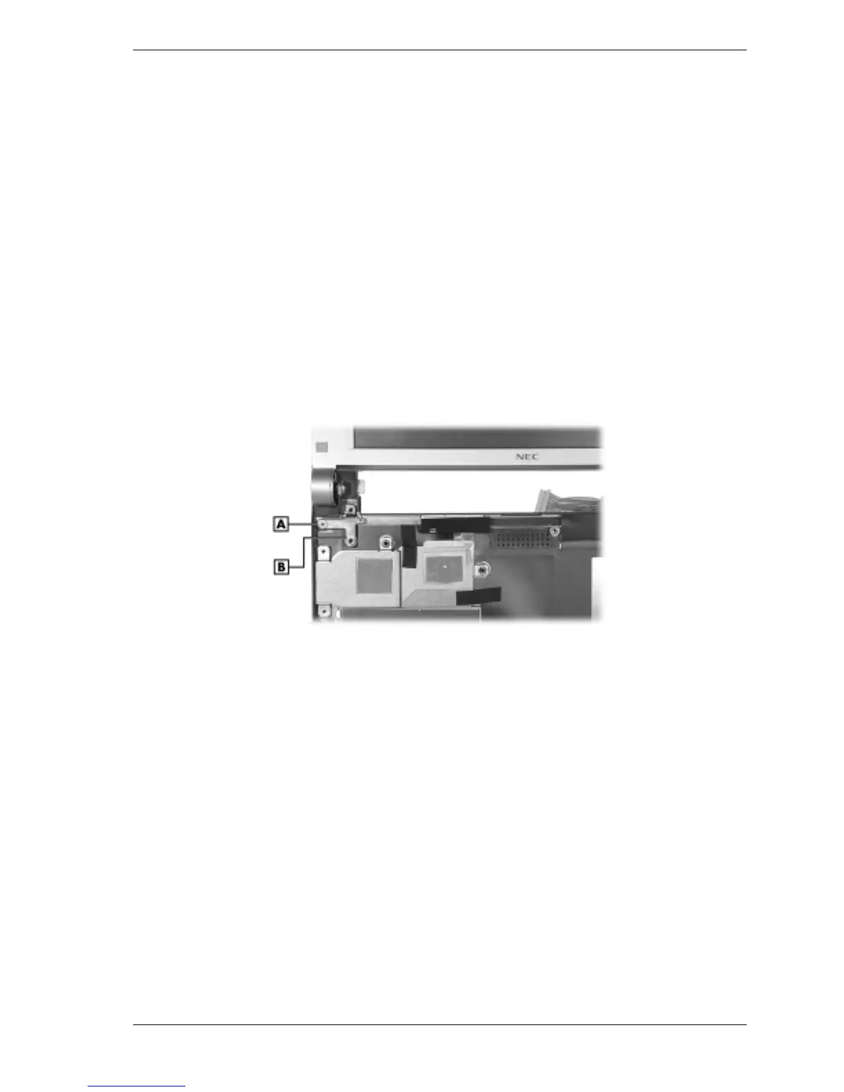 A – Bracket Screw (left side) B – LCD Panel Hinge Bracket (left side)