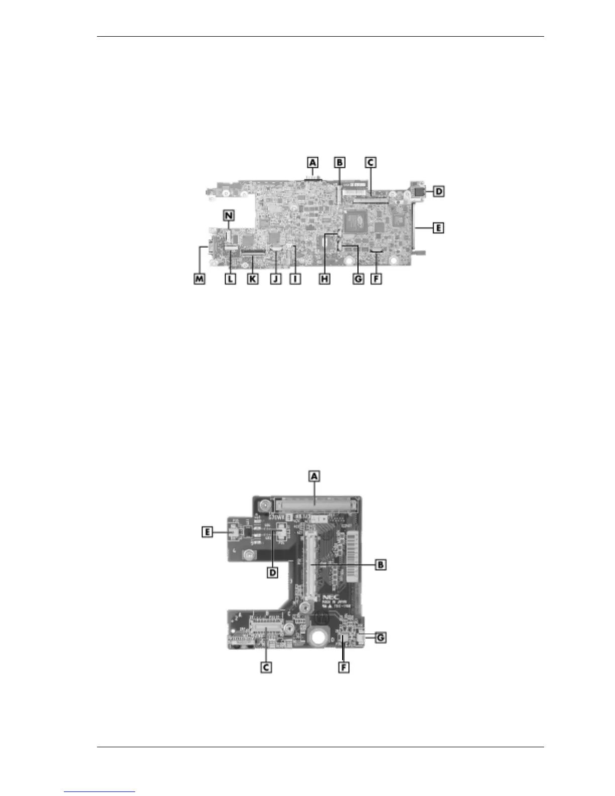 C – LCD Panel Cable Connector P2 J – Cable Connector P14 (not used)