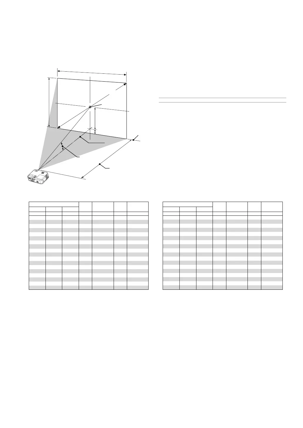 The following shows the proper relative positions of the projector and screen. Refer to the table to determine the position of installation.