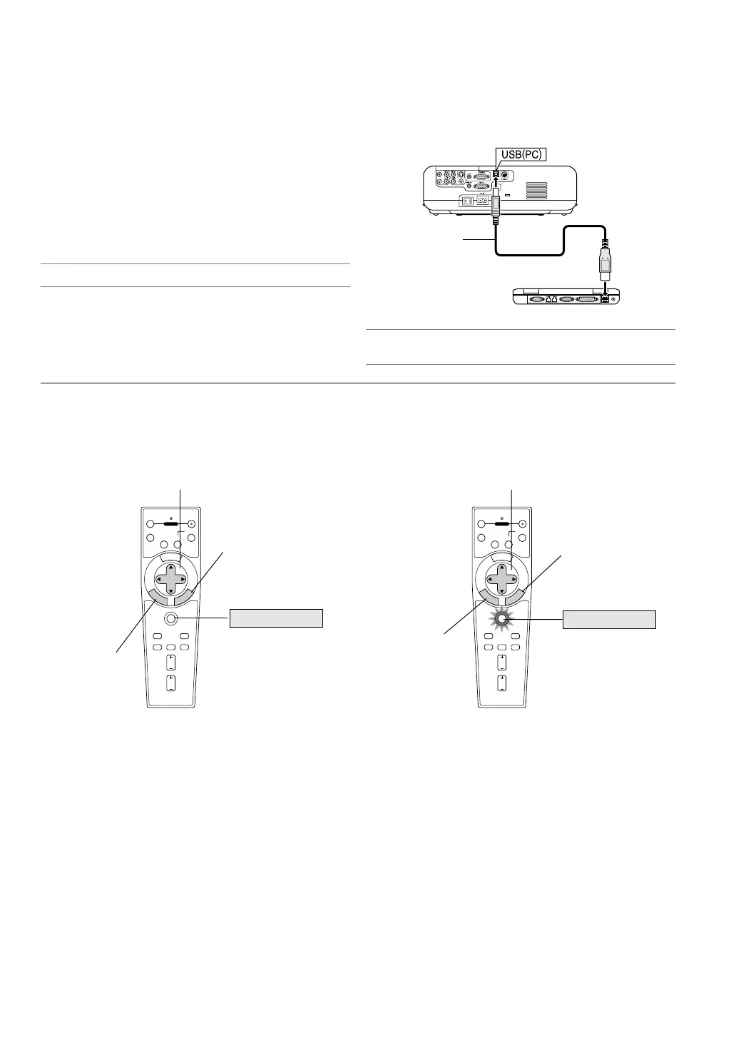 • When the PJ button is lit, if you want to use the mouse function immediately, press the PJ button to return to the Computer mode (not lit).