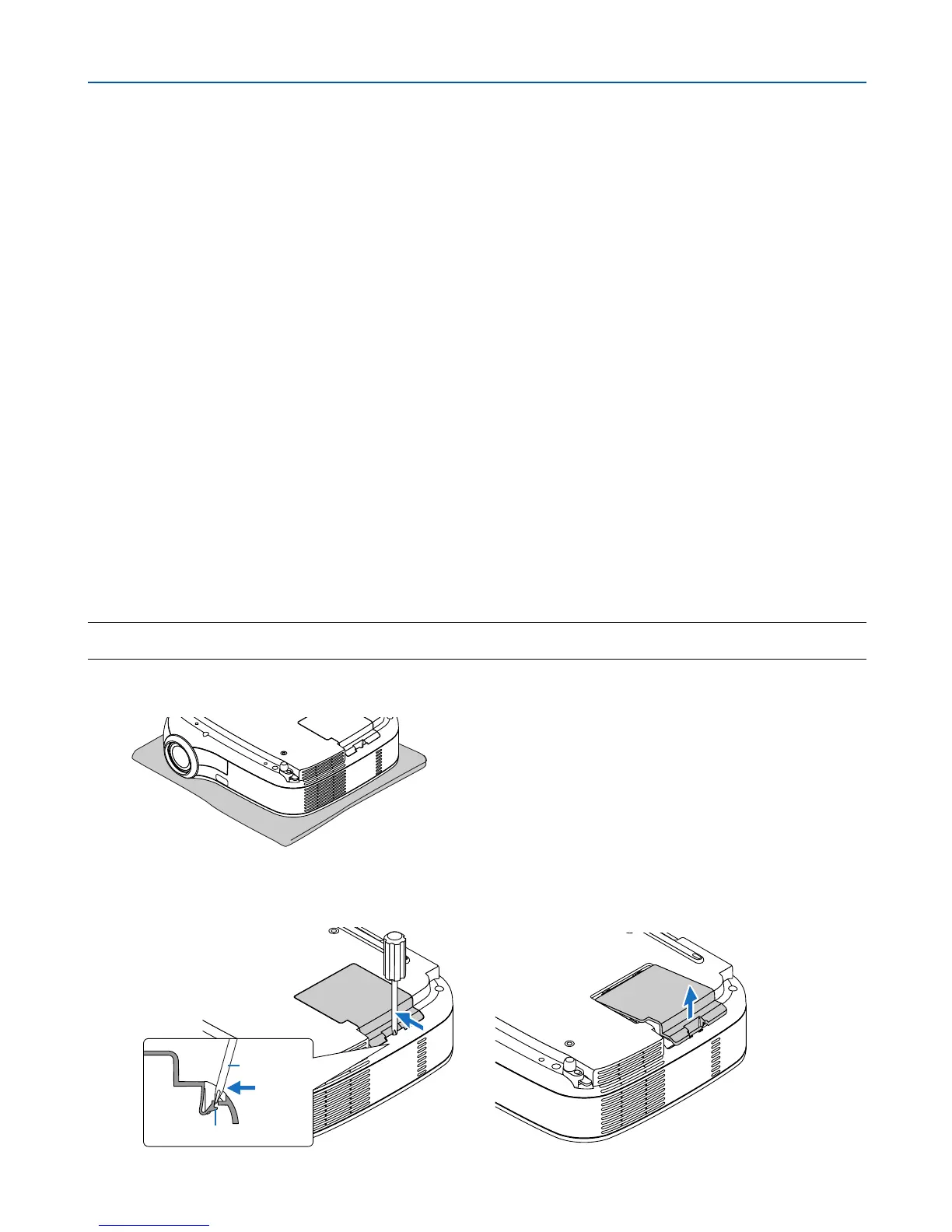 • DO NOT REMOVE ANY SCREWS except two lamp case screws. You could receive an electric shock.