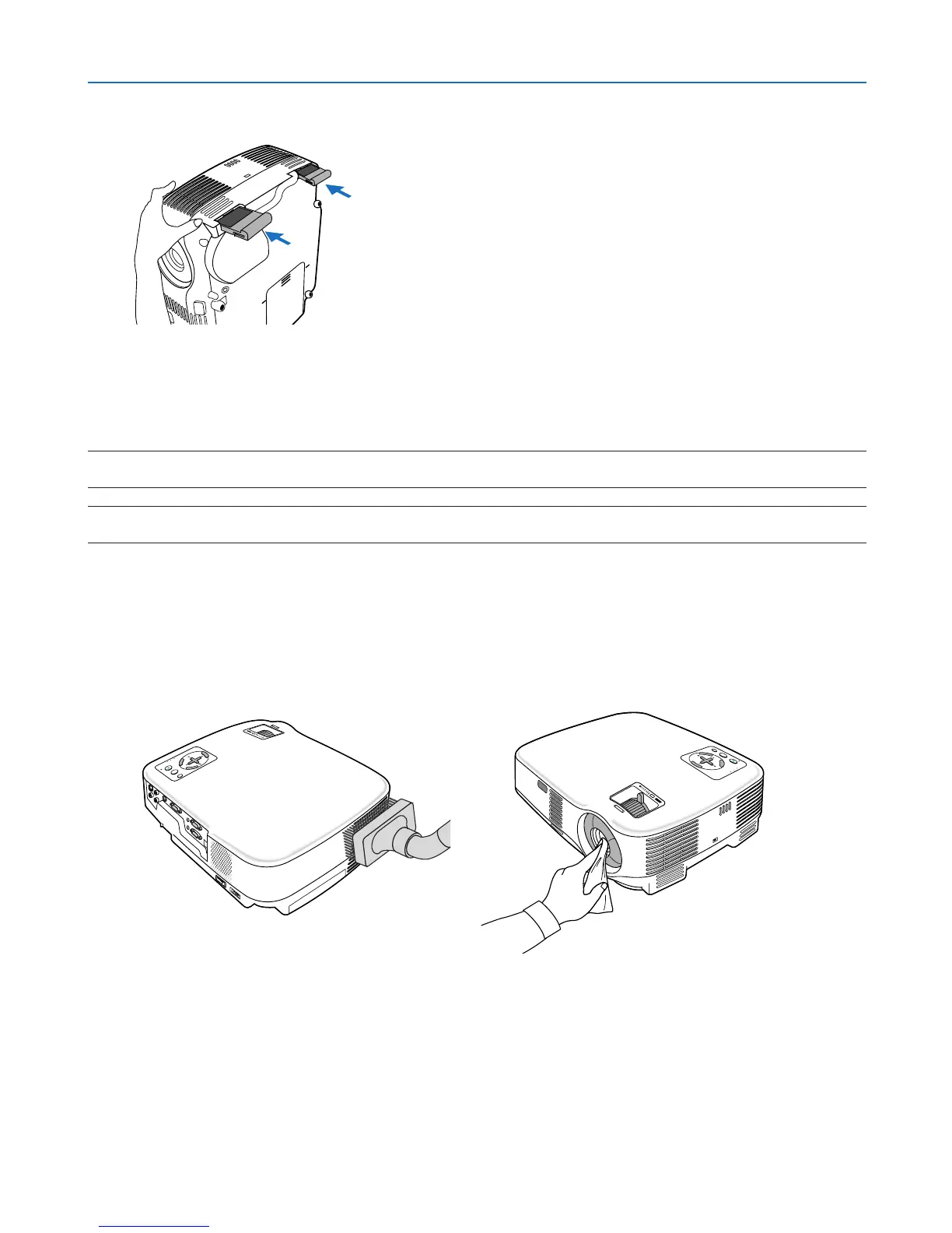 remove dust and dirt from the projector cabinet. Keep out dust and dirt during filter replacement.