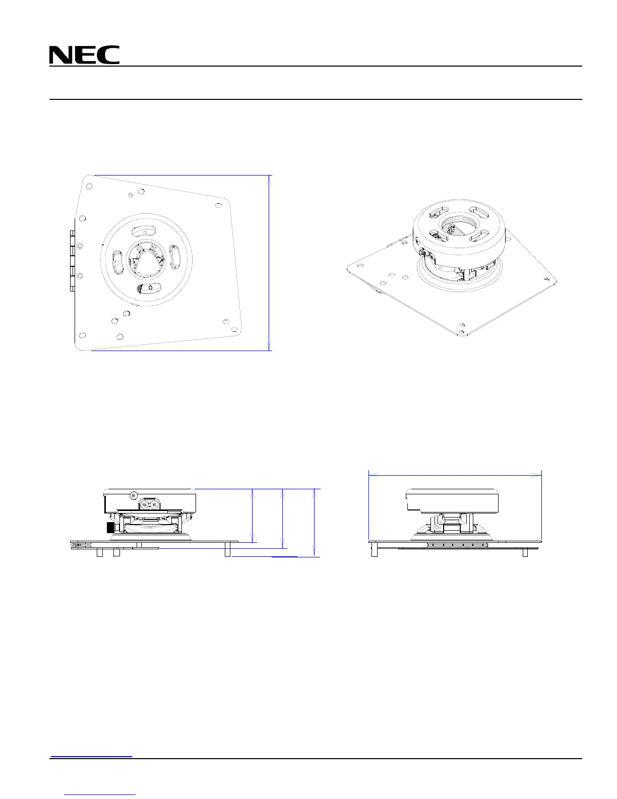 The following drawings show the ceiling mount dimensions.