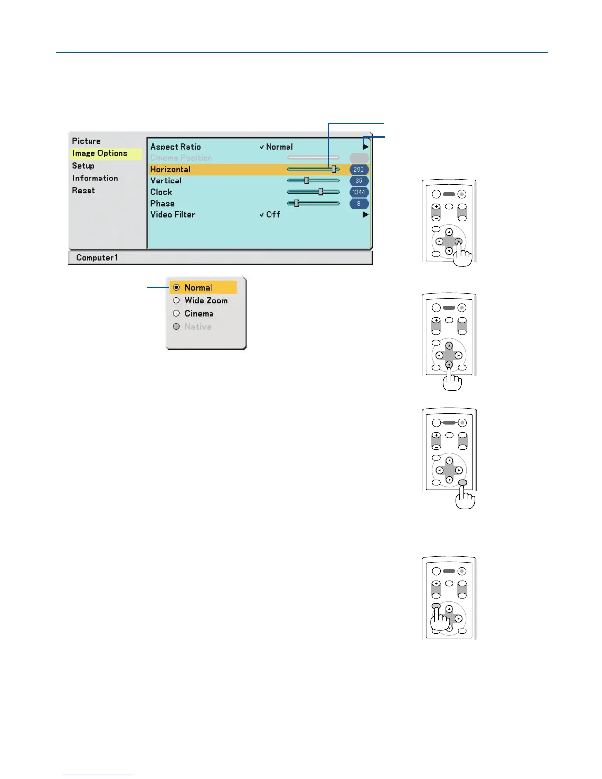 projector cabinet to select the item you want to adjust or set.