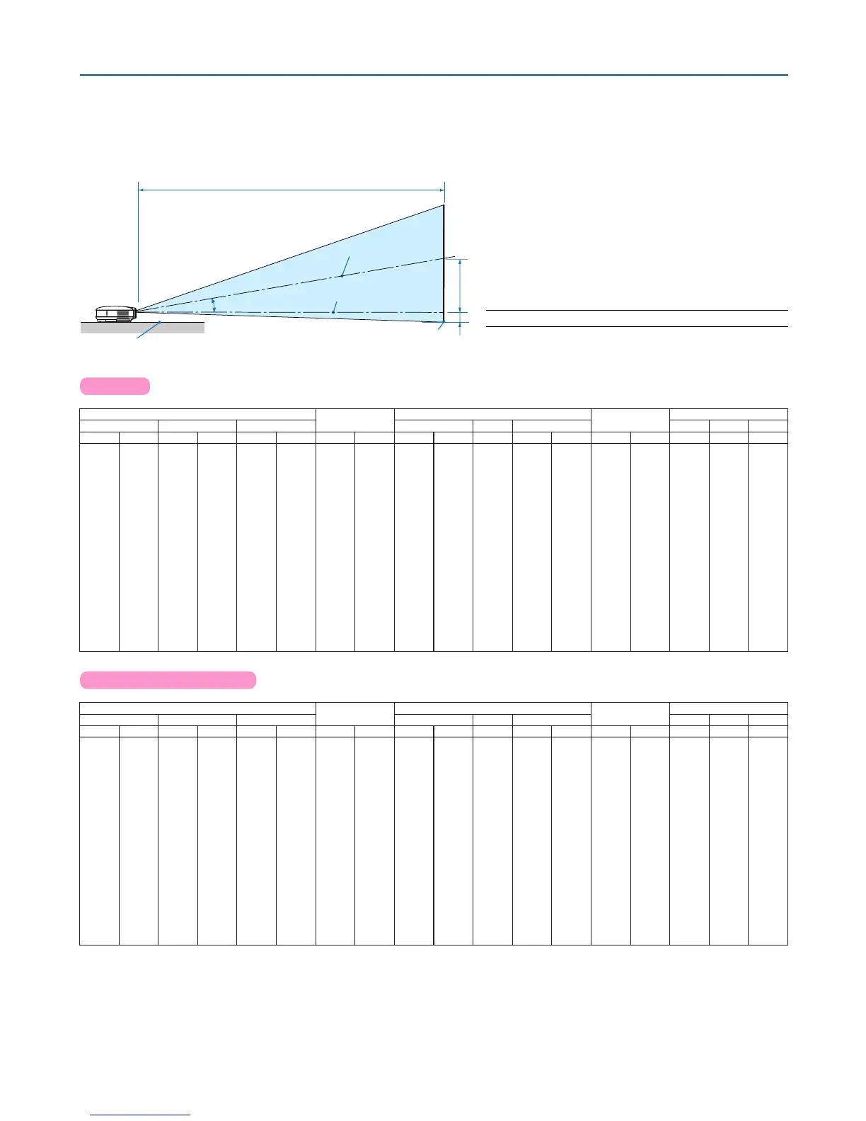 The following shows the proper relative positions of the projector and screen. Refer to the table to determine the