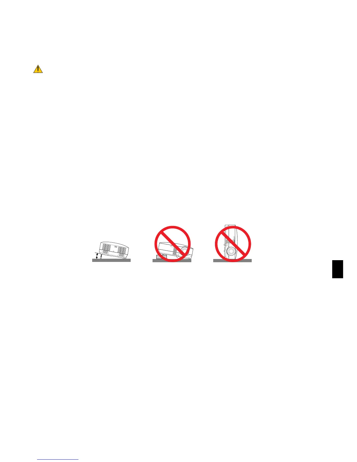 Projektorn får inte lutas mer än 10 grader och får inte installeras på ett annat sätt än på ett bord eller hängande i taket,