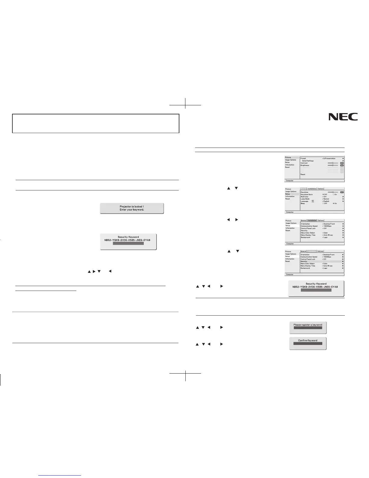 - Do not forget your keyword. However, if you forget your keyword, NEC or your dealer will provide you with