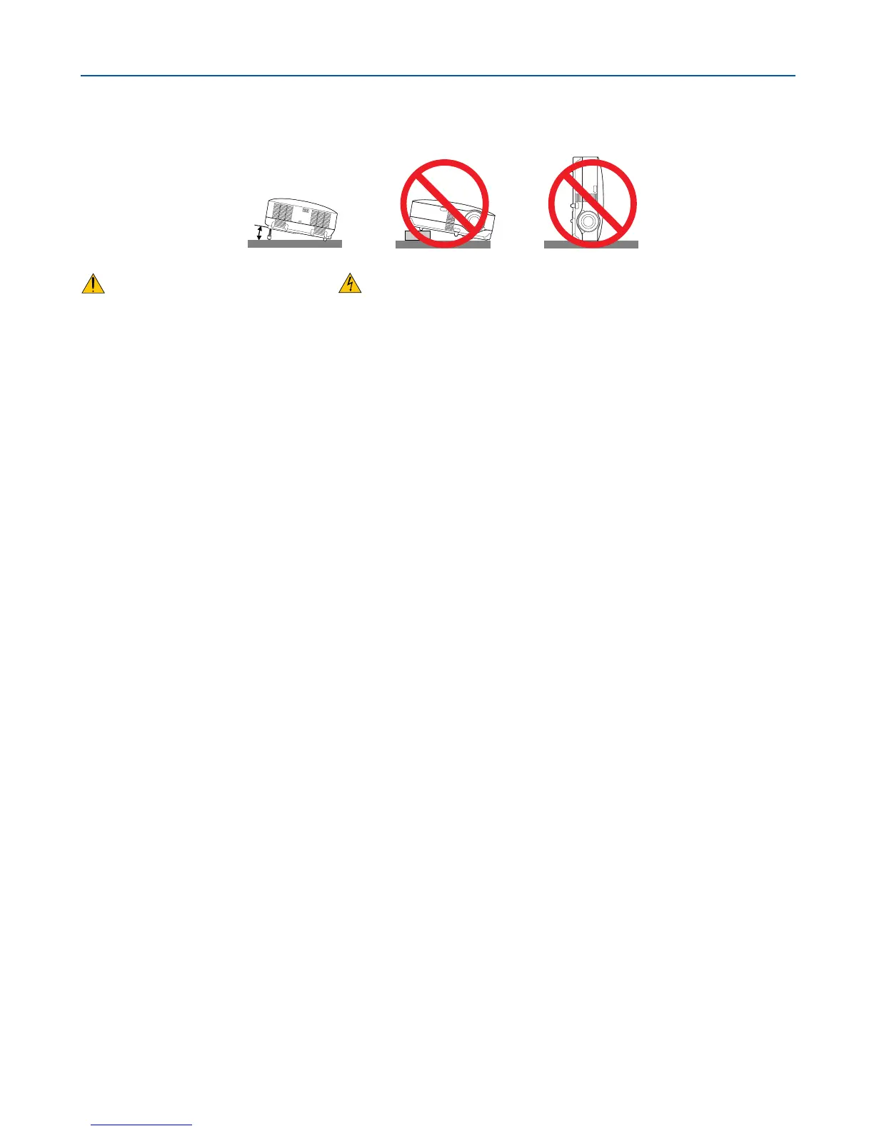 The tilt angle of the projector should not exceed 10 degrees, nor should the projector be installed in any way other