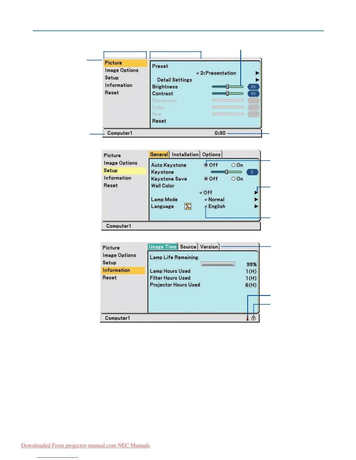 Source ...................................... Indicates the currently selected source.