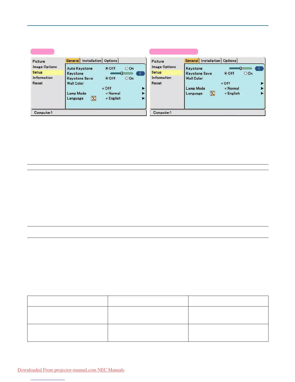 NOTE: When [Auto Keystone] is set to [On], [Keystone Save] is not available. Next time you turn on the power, the Auto Keystone