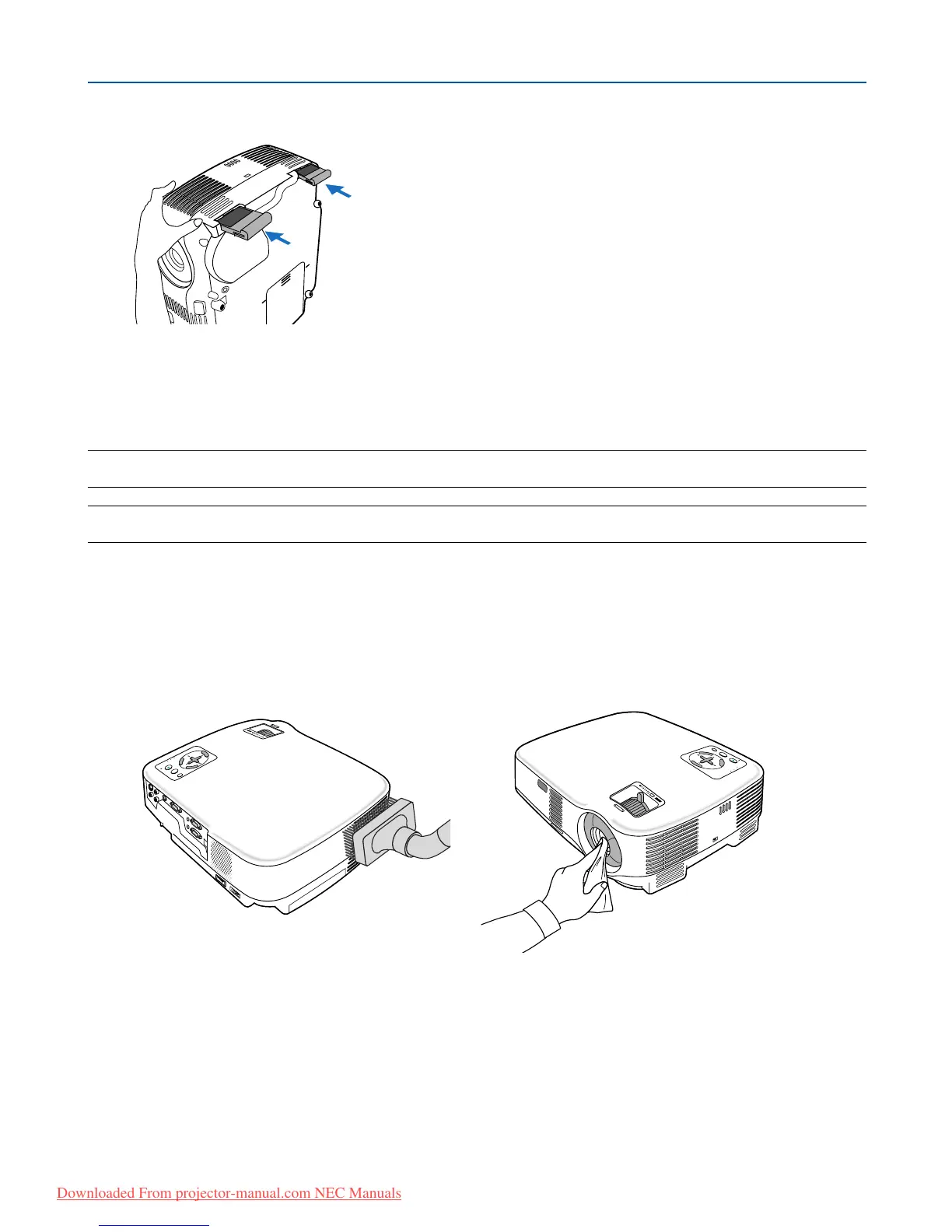 remove dust and dirt from the projector cabinet. Keep out dust and dirt during filter replacement.